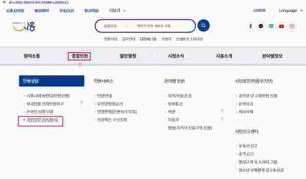 민원 신청은 시흥시청 누리집 상단 메뉴의 ‘종합민원 → 국민신문고’ 항목에서 가능하다.