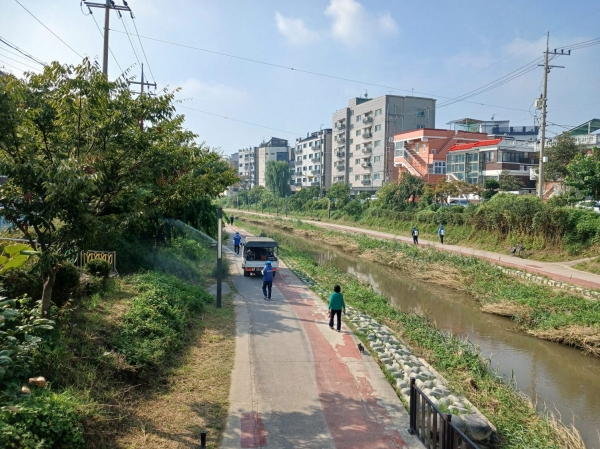 무더위가 길어지고 이상 고온 여파로 가을 모기가 기승을 부리고 있어 모기·파리 등 위생 해충으로부터 각종 감염병을 예방하기 위해 연휴에 많은 시민이 찾는 수원천변 산책로를 방역했다.
