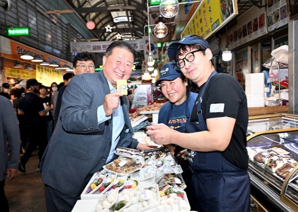 김 시장은 지역화폐로 각종 물품을 구매하며 상인들을 격려했으며 지역경제 활성화를 위한 민생회복 소비쿠폰 2차 지급에 시민 모두가 빠짐없이 신청해 줄 것과 9월 15일부터 무제한 할인쿠폰을 제공하고 있는 공공배달 앱 ‘배달특급’의 적극적인 이용을 부탁하며 지역경제 현장의 목소리를 청취했다.