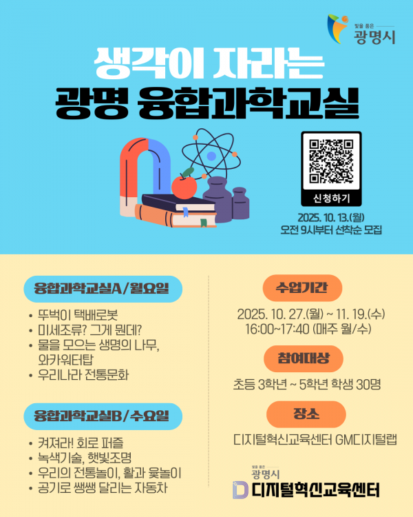 참가 신청은 10월 13일부터 선착순으로 접수하며 광명시디지털혁신교육센터 누리집에서 가능하다.