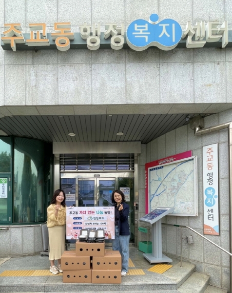 ㈜한땀푸드는 명절을 가족 없이 홀로 지낼 어르신 등 어려운 이웃을 위해 바쁜 일정에도 직접 주교동 행정복지센터를 찾아 후원 물품을 전달했다.