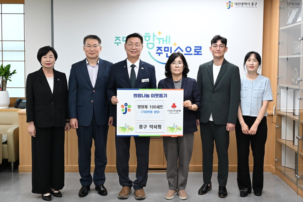 [금요저널] 대전 중구(구청장 김제선)는 지난 2일 중구 약사회 (회장 구선회)에서 저소득 청소년을 위한 영양제 100개를 기탁했다고 밝혔다.
