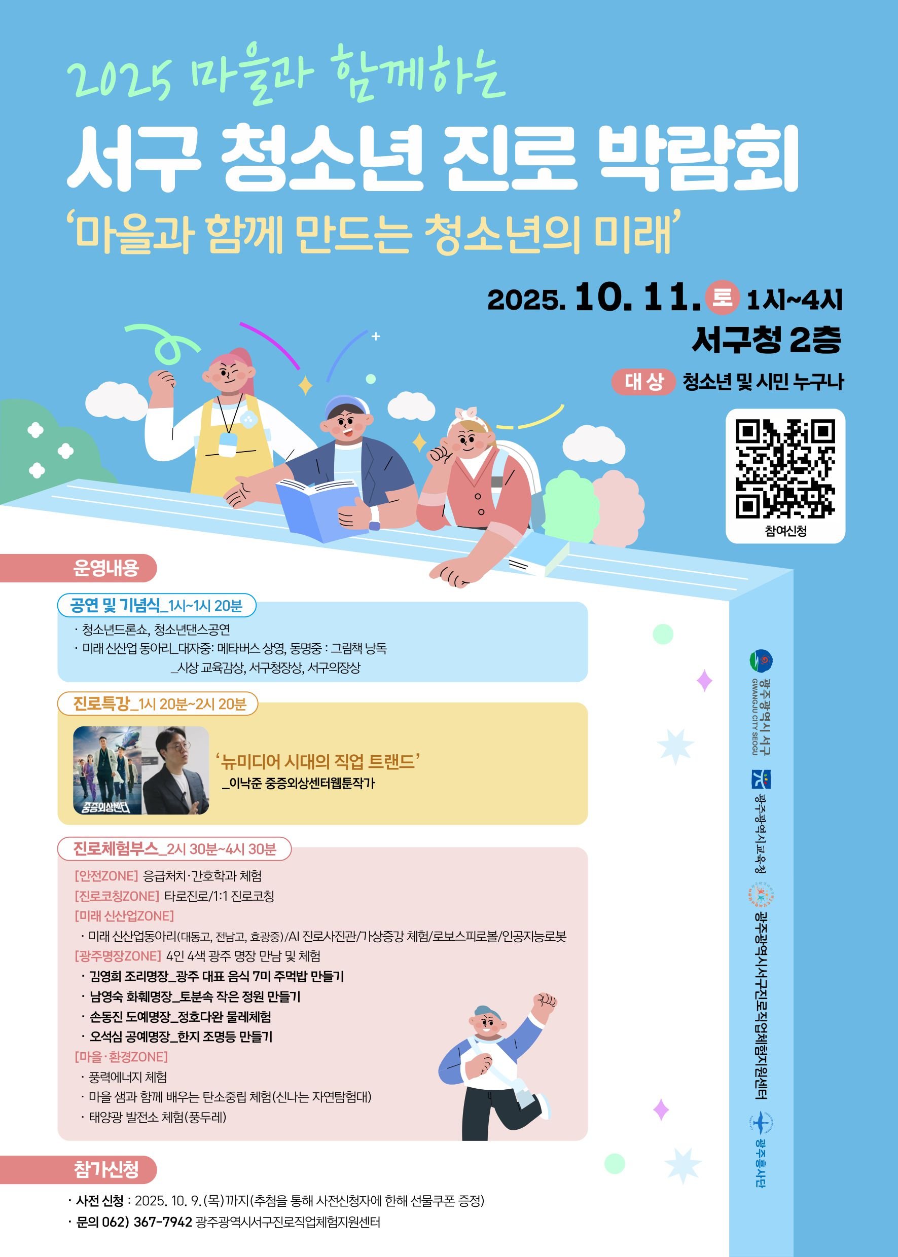 [금요저널] 광주광역시 서구(구청장 김이강)는 오는 11일 서구청 들불홀에서 ‘2025 마을과 함께하는 청소년 진로 박람회’를 개최한다.