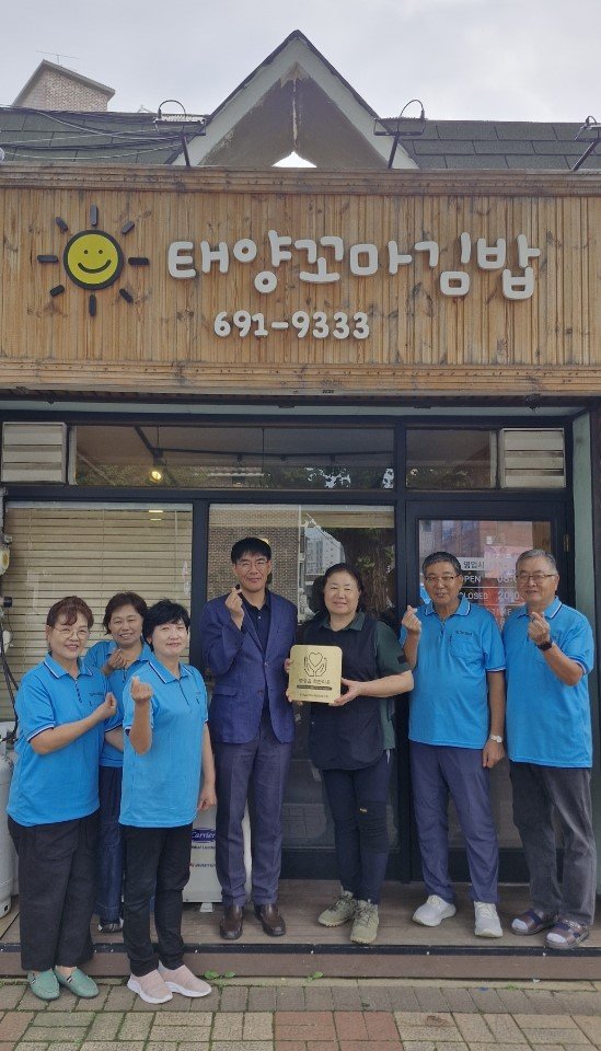[금요저널] 평택시 팽성읍 지역사회보장협의체는 지난 2일, 나눔 활동에 동참한 ‘태양꼬마김밥’에 ‘착한 이웃’ 현판을 전달했다.