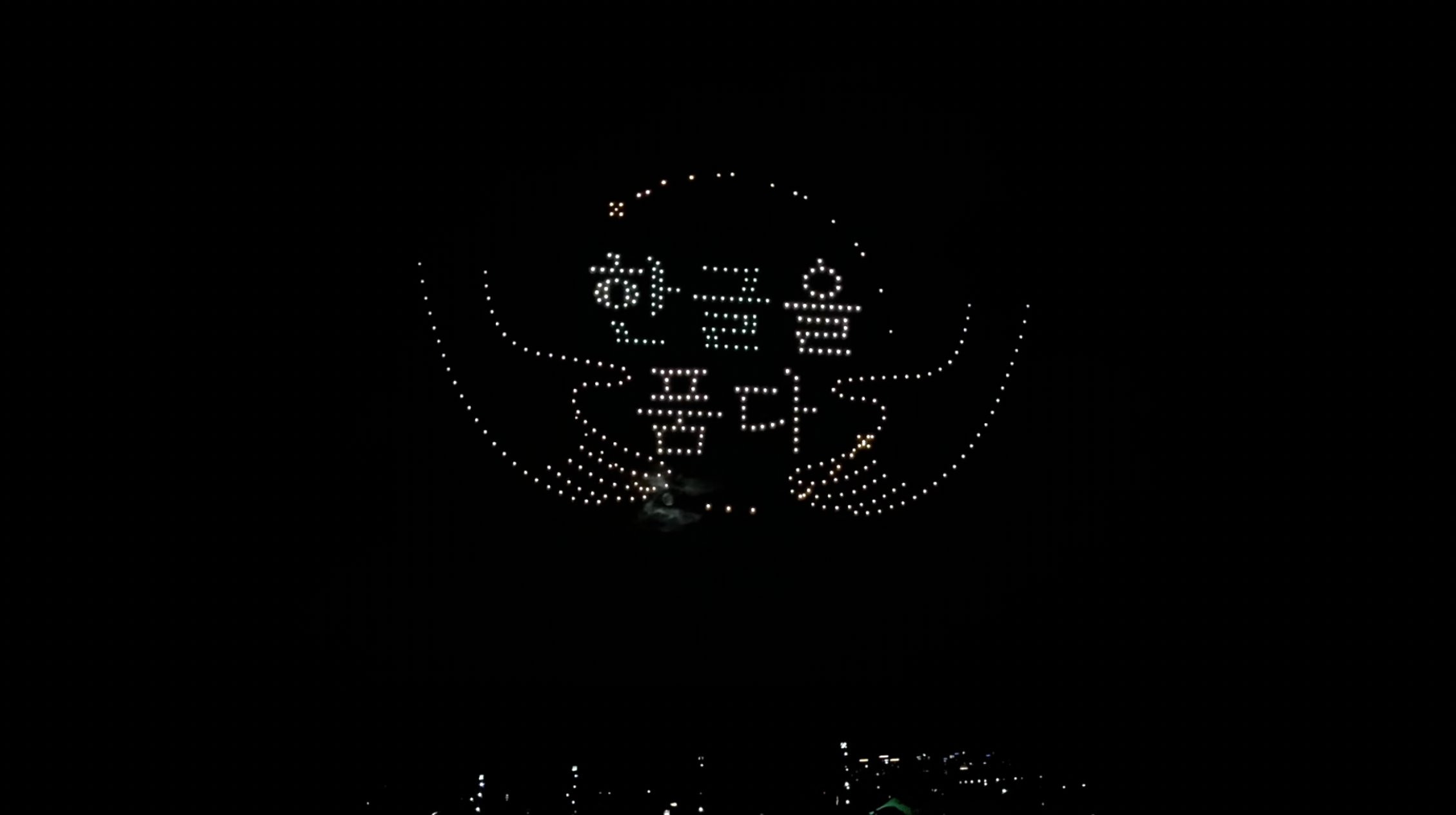 이날 개막식의 대미는 대규모 드론쇼가 장식했다. 총 400대의 드론은 음악에 맞춰 세종호수공원의 가늘 밤하늘을 배경으로 세종대왕의 한글창제 정신과 2025 세종한글축제의 개막을 알렸다.