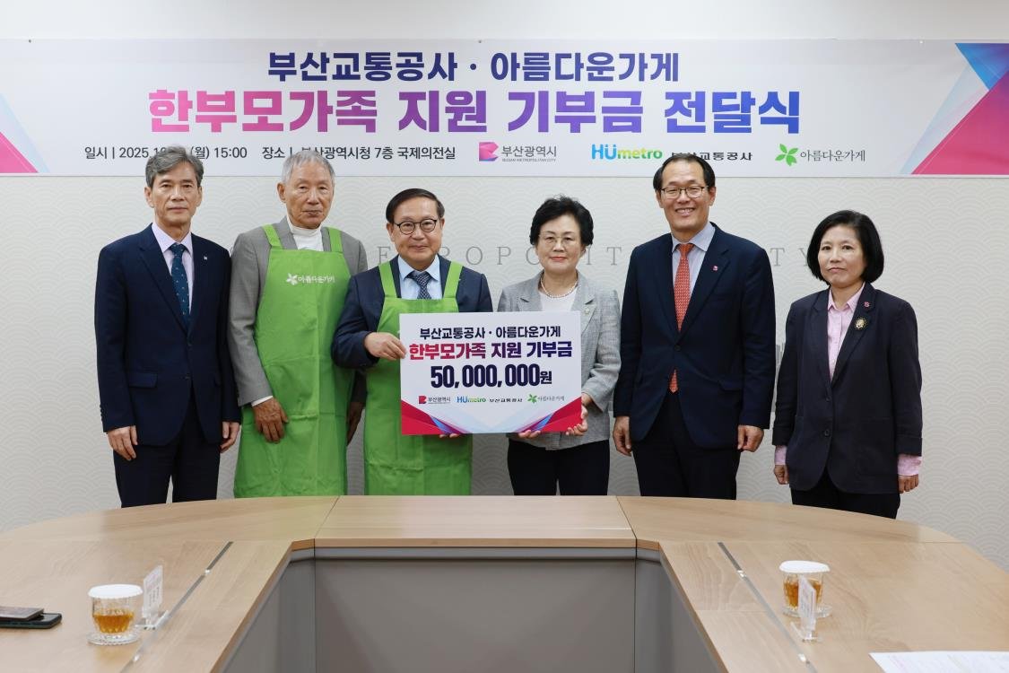이날 전달식에서 부산교통공사와 아름다운가게는 공동모금사업으로 모은 5천만원을 한부모가족복지시설 주거환경 개선 사업비로 기부했다.