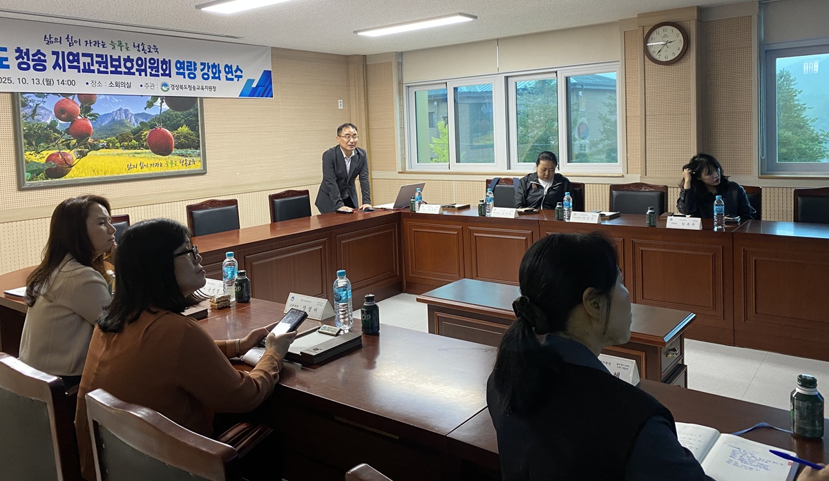 □ 경상북도청송교육지원청(교육장 남정일)은 13일(월) 14시, 지역교권보호위원회 위원을 대상으로 ‘교권 심의 시 위원의 접근법 및 교육활동 침해 심의 사례’를 주제로 역량 강화 연수를 실시했다.