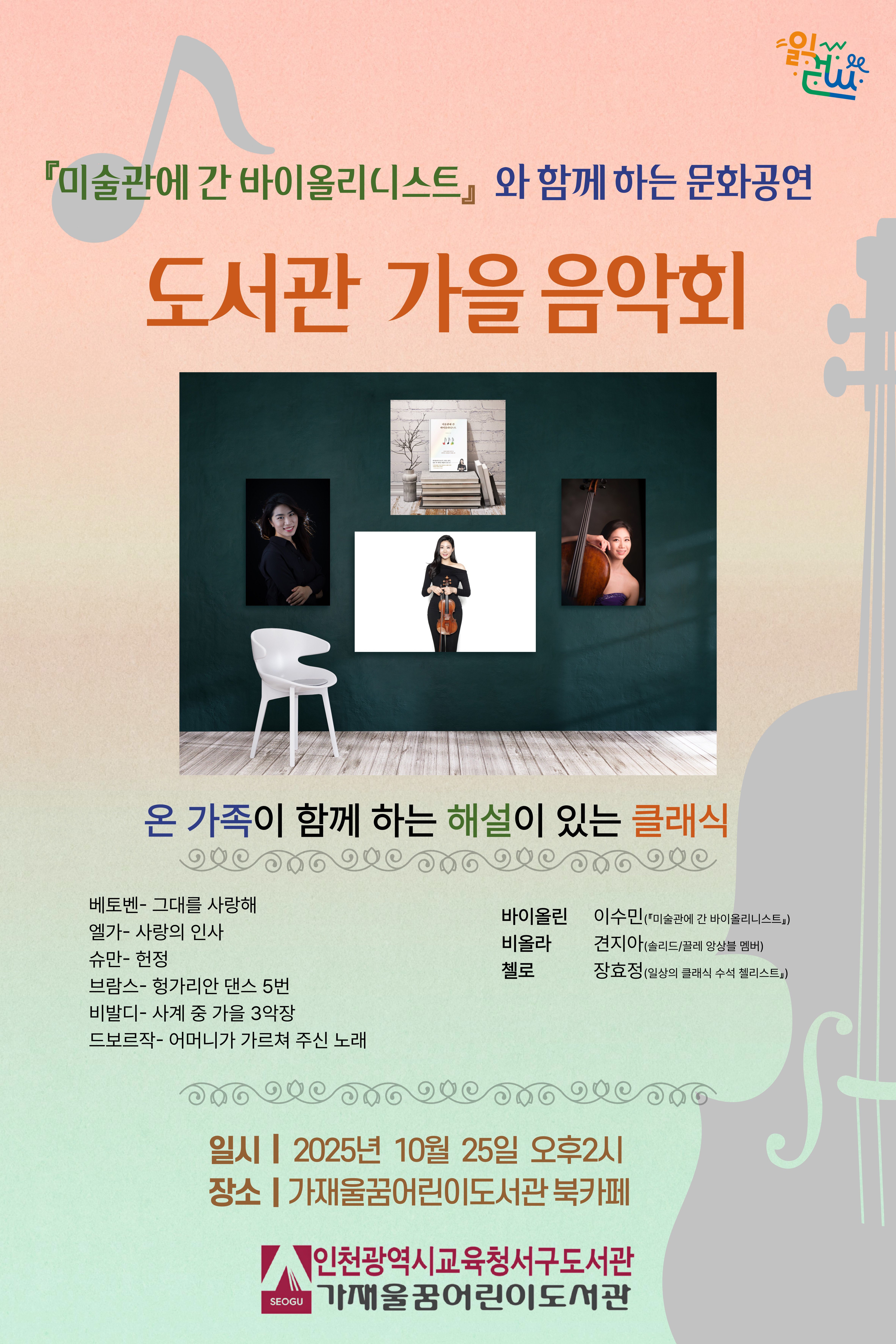 인천광역시교육청서구도서관, ‘도서관 가을 음악회’ 운영 (사진제공=인천광역시)