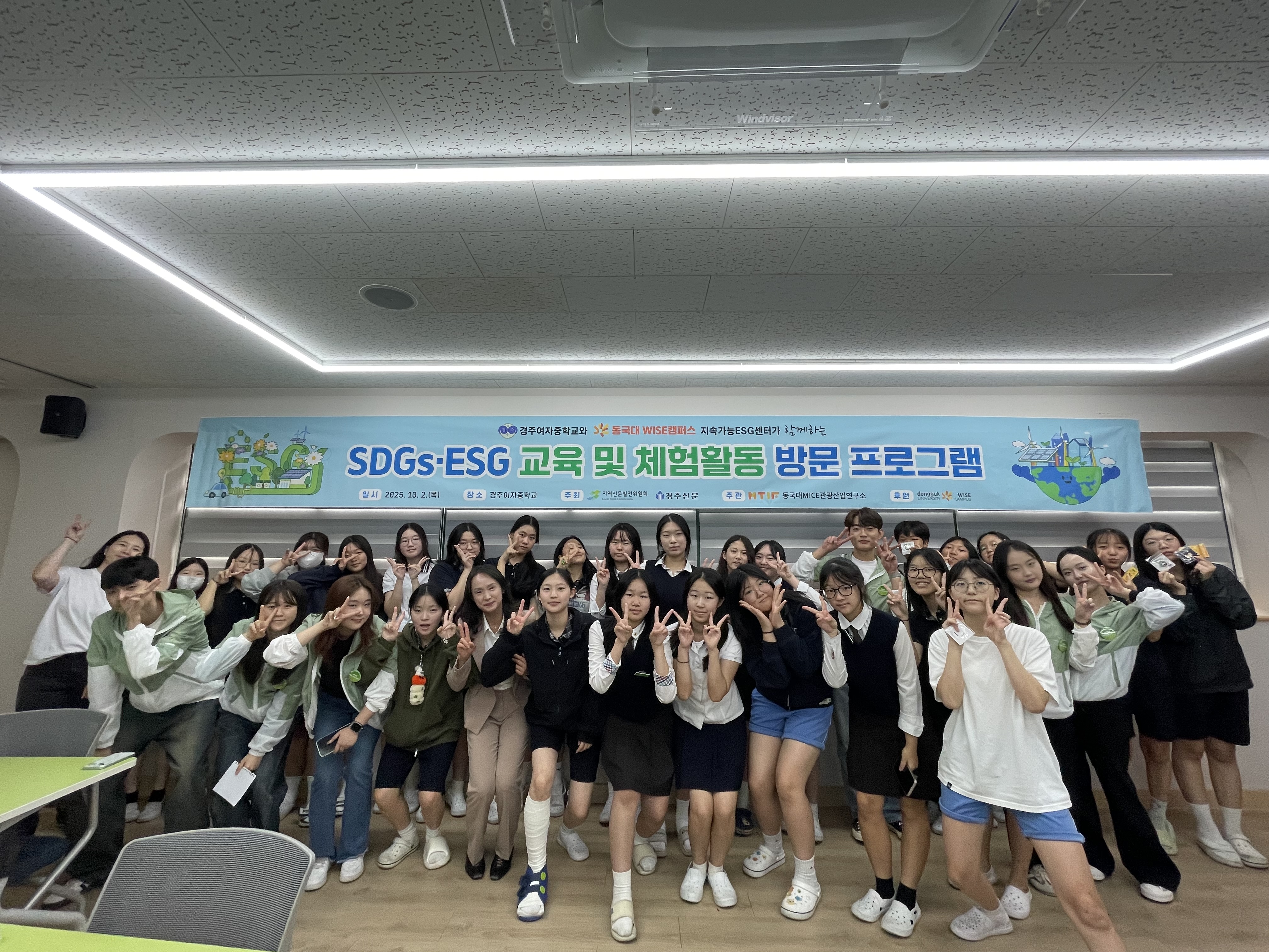 □ 인문학이 흐르는 따뜻한 행복학교, 학생-선생님-학부모가 함께 성장하는 경주여자중학교(교장 조재형)는 2025년 10월 2일 탄소중립 실천 도시 경주를 구현하기 위한 공동체 협력의 일환으로 SDGs·ESG 교육 및 체험 활동 방문형 프로그램을 운영하였다. 이번 프로그램은 학생들에게 지속가능발전목표(SDGs)와 환경·사회·투명경영(ESG)에 대한 올바른 이해를 돕고, 실제 생활 속에서 실천할 수 있는 방법을 체험을 통해 익히도록 기획되었다.