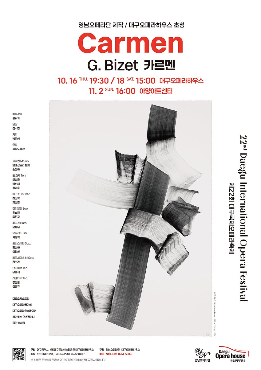 ‘2025 지역대표예술단체 육성지원사업’ 선정작 영남오페라단의 오페라 <카르멘> 초청. 19세기 프랑스 음악의 정수를 담은 비제의 명작, 지역 예술의 힘으로 재탄생. 대구오페라하우스와 영남오페라단이 함께 여는 오페라 <카르멘>