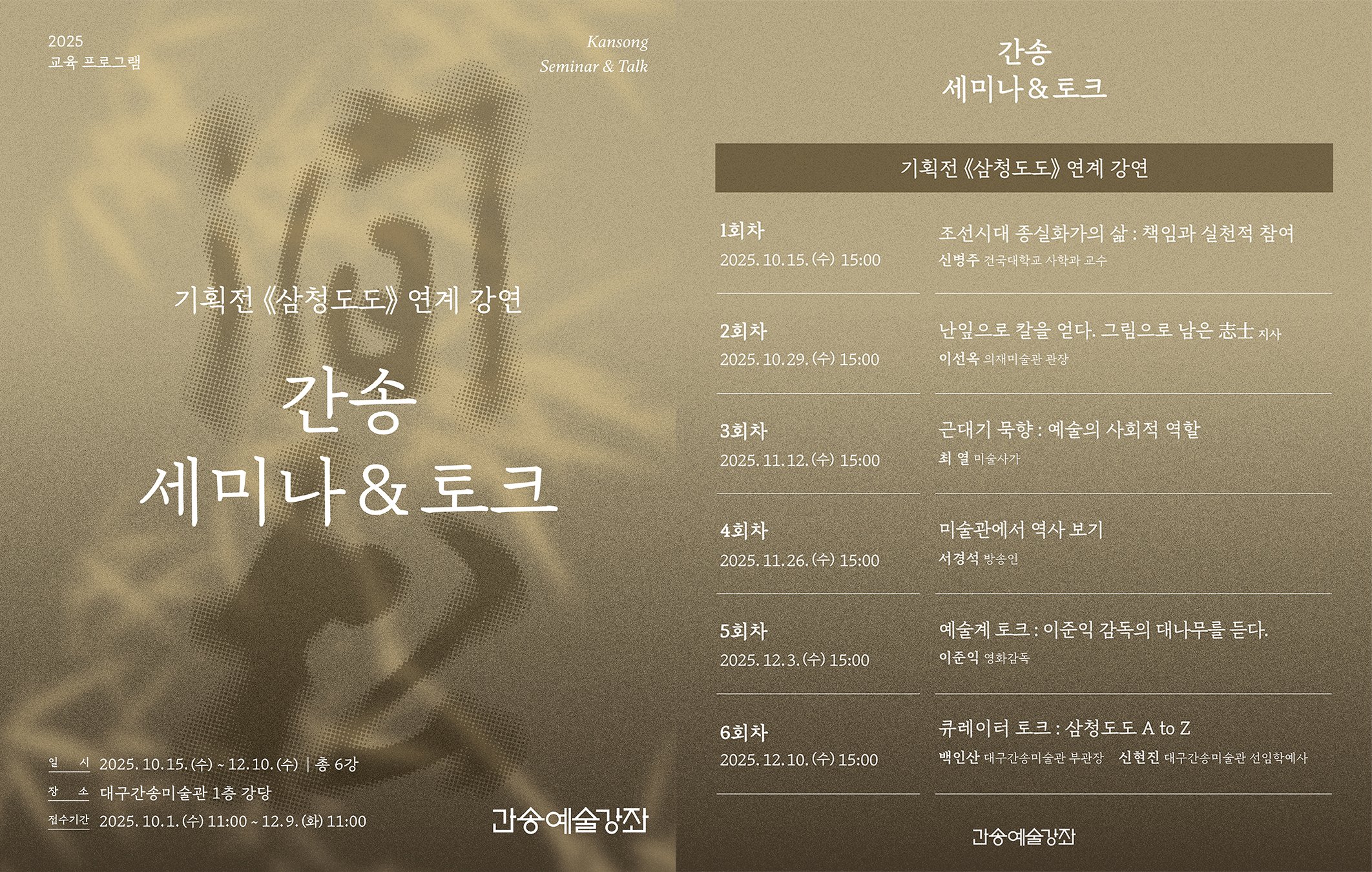 [금요저널] 대구간송미술관(관장 전인건)은 광복 80주년 기념 기획전 ‘삼청도도 – 매- 죽- 난, 멈추지 않는 이야기’와 연계해 ‘간송예술강좌: 세미나 & 토크’를 운영한다.