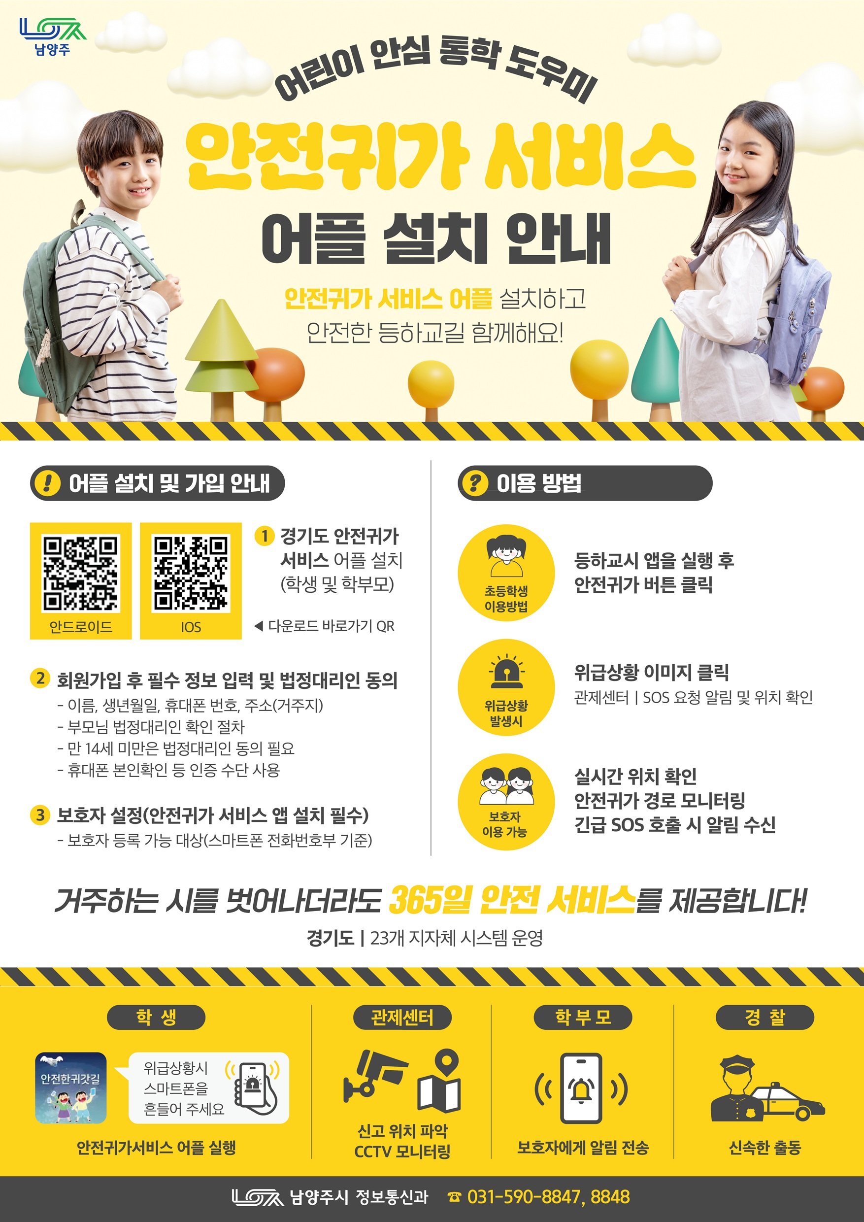 또한, 남양주시 ‘안전귀가 서비스’ 모바일 앱은 통합관제센터와 연계돼 24시간 SOS 호출 기능을 통해 긴급상황 발생시 경찰관 출동 및 즉각적인 상황 대응을 지원한다.