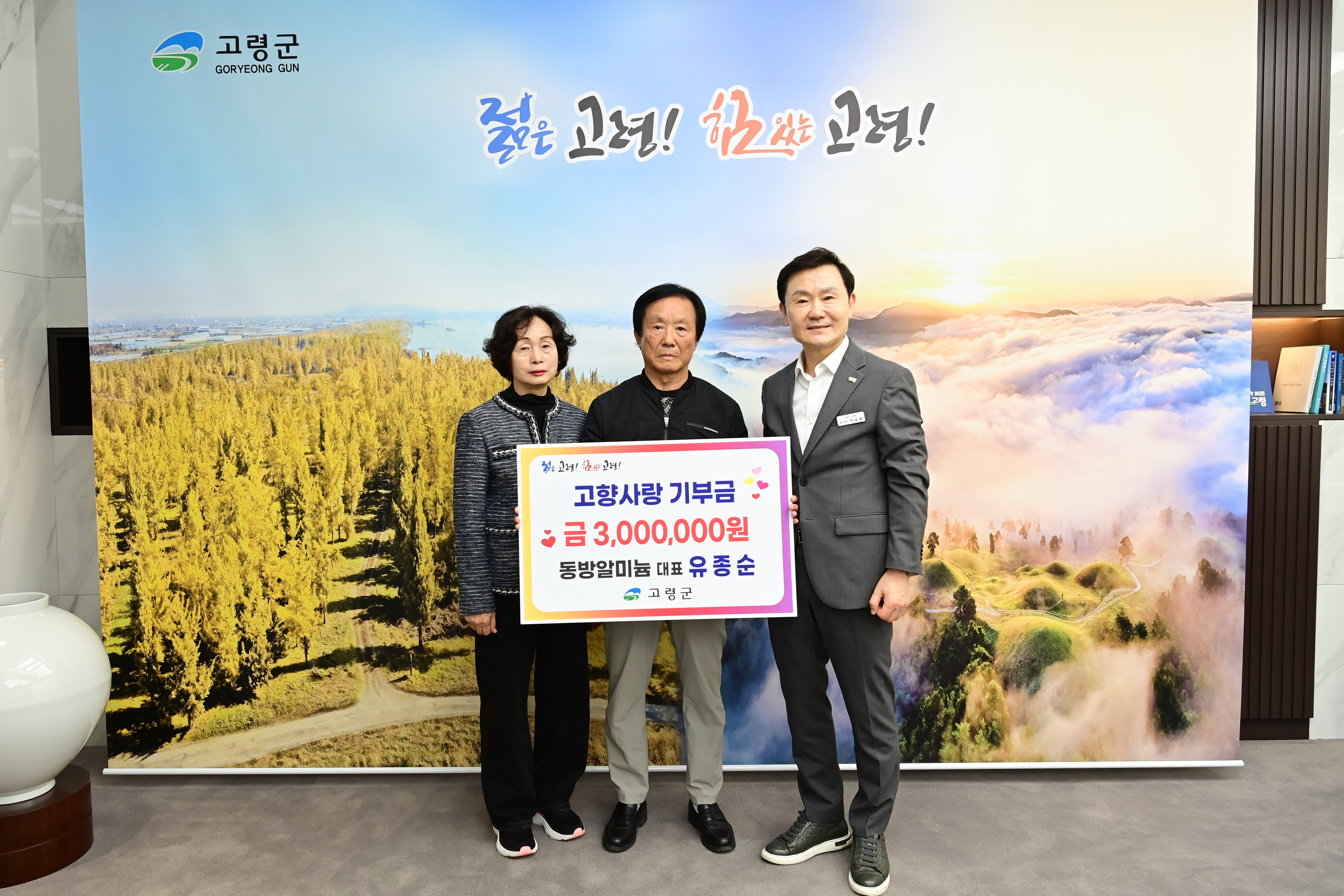 [금요저널] 고령군(군수 이남철)은 동방알미늄 유종순 대표가 지난 13일 고령군청을 방문해 2년 연속 고향사랑기부금 300만원을 기탁하며 고령군 지역발전에 힘을 보탰다고 전했다.
