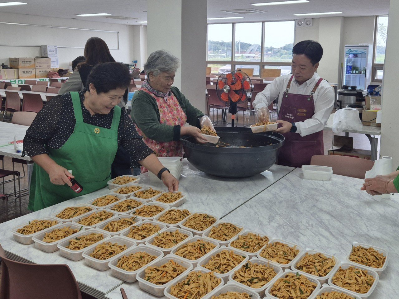 대신면 새마을부녀회 회원들은 이른 아침부터 배추겉절이, 고구마줄기볶음, 어묵볶음 등 밑반찬을 정성껏 준비했다.