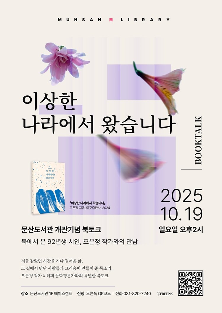 [금요저널] 파주시 문산도서관은 오는 19일 ‘이상한 나라에서 왔다’의 저자인 오은정 작가와 허희 문학평론가가 함께하는 ‘작가와의 만남’을 개최한다.