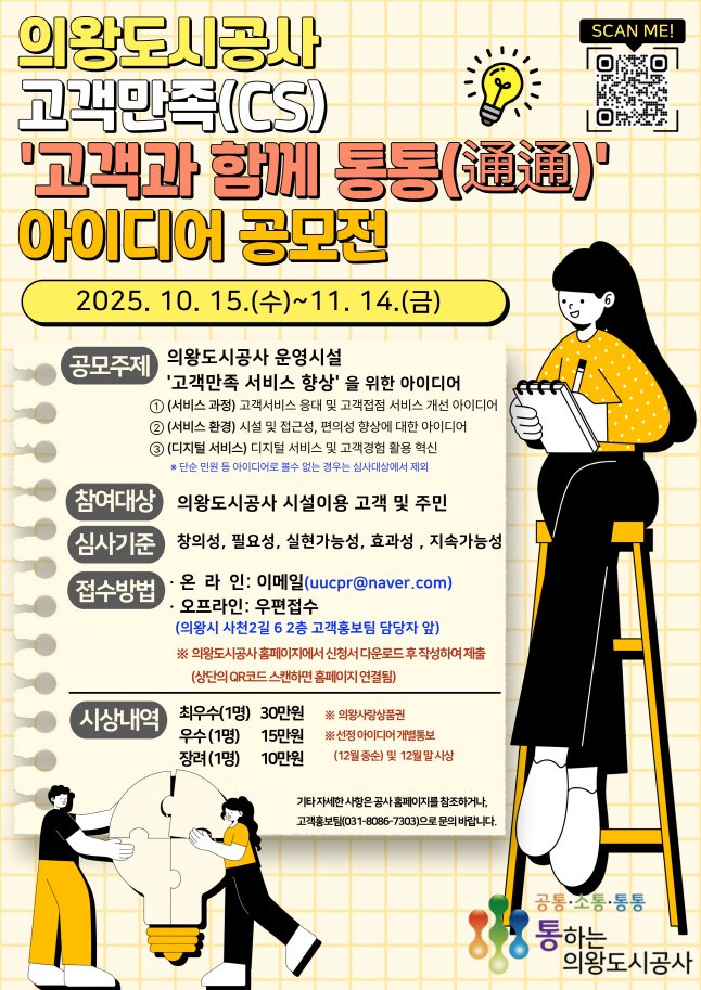 [금요저널] 의왕도시공사는 고객만족(CS) 아이디어 공모전 ‘고객과 함께 통통()’을 추진한다고 밝혔다.