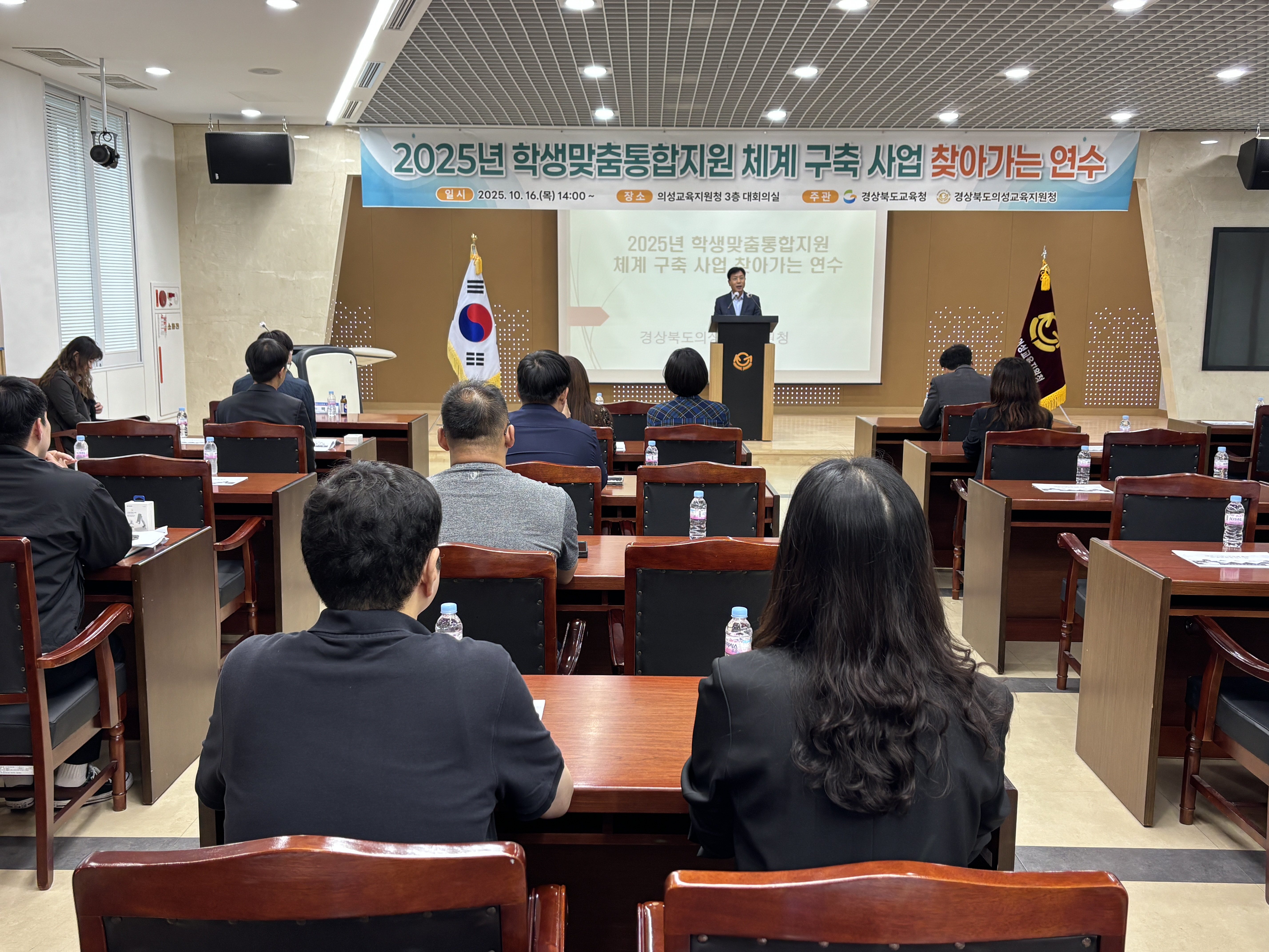 경상북도의성교육지원청(교육장 이우식)은 10월 16일(목) 14시부터 의성교육지원청 3층 대회의실에서 2025년 학생맞춤통합지원 체계 구축 사업「찾아가는 연수」를 개최했다.