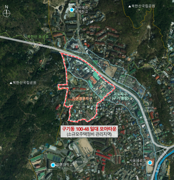 서울시는 10월 16일 제15차 소규모주택정비 통합심의 소위원회에서 ‘종로구 구기동 100-48일대 모아타운’ 외 3건을 통과시켰다고 밝혔다.