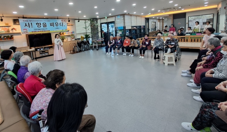 곱게 한복차림을 한 시앤 시 회원들이 "시 향을 피우다"라는 주제를 가지고 고운 목소리로 어버이의 고마움에 대한 시 낭송과 전진식 시인의 에어로폰, 연주 및 안영만 사회자의 하모니카 연주 등으로 옛 노래를 부르며 노인들에게 지난날의 기억을 회상시키며 함께 박수를 치고 노래를 부르며 기쁨의 어울림이 되어 노인들을 위한 즐겁고 흥겨운 위로잔치를 했다