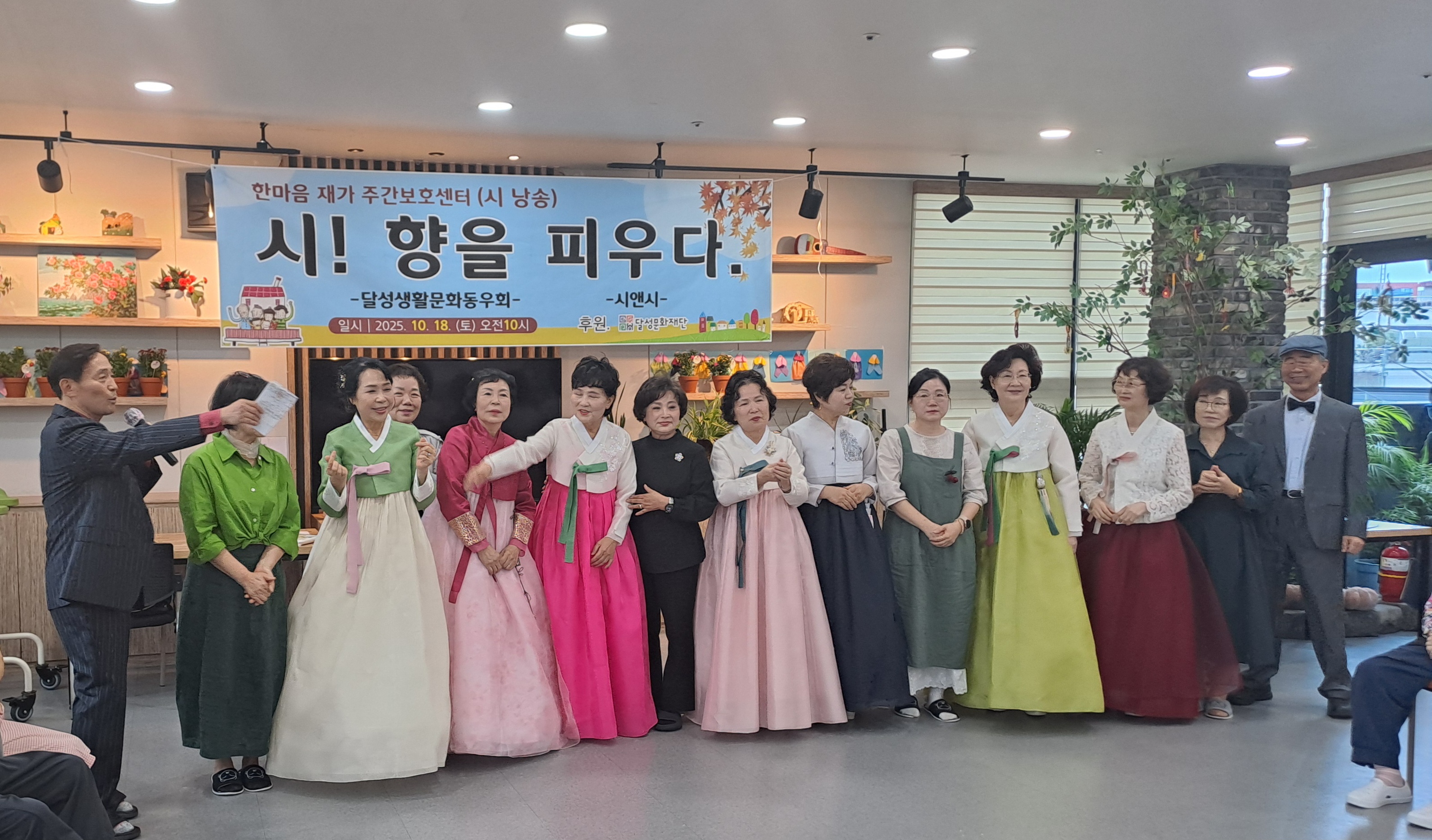 2025년 10월 18일 토요일, 대구 달성 문인동우회 소속 "시앤 시" (회장 한동선) 회원들이 한마음복지관에서 어르신들을 위한 봉사활동을 했다.