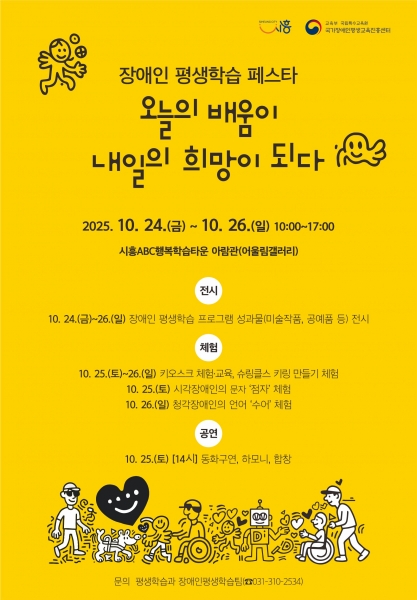 [금요저널] 시흥시는 오는 10월 24일부터 26일까지 3일간, 시흥ABC행복학습타운 아람관과 어울터 일원에서 ‘2025 장애인 평생학습 페스타’를 개최한다.