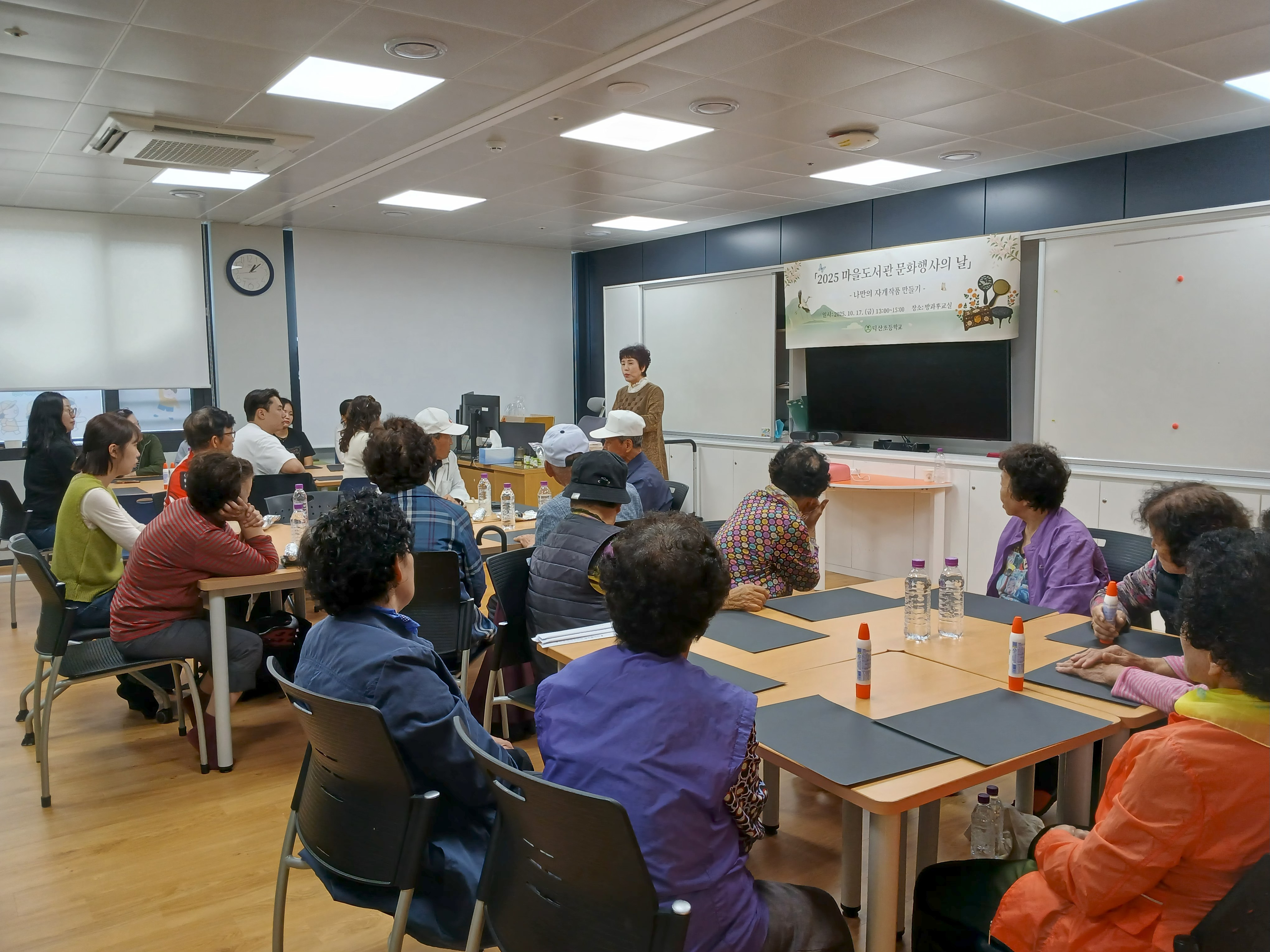 덕산초등학교(교장 최영환)는 10월 17일(금) ‘마을도서관 문화체험의 날’ 행사를 개최하였다. 어르신들께서 평소 읽고 싶었던 책을 살펴보고 자신에게 선물하는 시간을 가졌다. 또한 우리 전통 자개 작품의 아름다움과 우수성을 이해하고 약통, 그립톡, 거울 등의 작품을 디자인하여 만드는 시간을 가졌다.