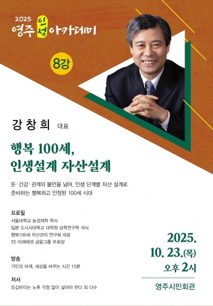 영주시는 이번 강연이 시민들이 인생의 후반부를 보다 주체적이고 의미 있게 설계할 수 있는 유익한 시간이 될 것으로 기대하고 있다.