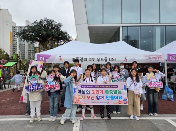 [금요저널] 오산시는 지난 18일 오산시청 광장에서 열린 ‘제7회 오산시 청소년 축제’ 현장에서 오산시 아동의회 의원들이 ‘아동 권리, 함께 지켜요’라는 주제로 아동 권리 캠페인 활동 및 아동 권리 증진을 위한 홍보 부스를 운영했다고 밝혔다.