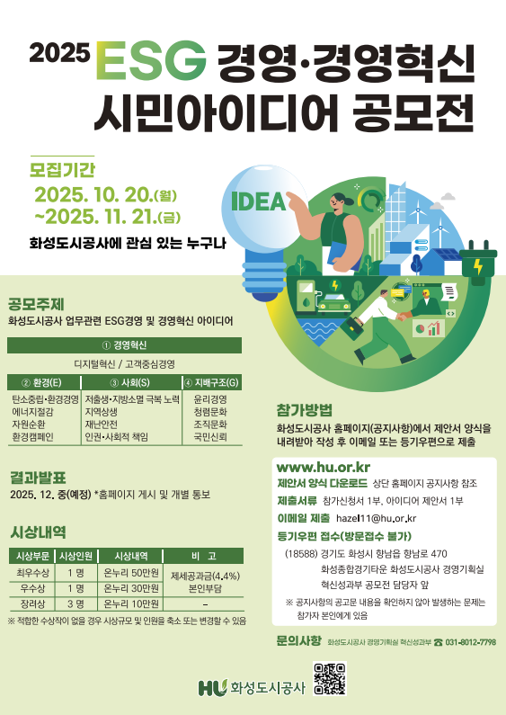 화성도시공사, 2025년도 ESG경영·경영혁신 시민 아이디어 공모전 개최