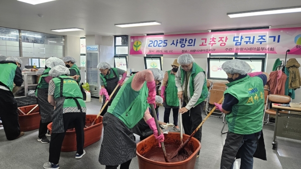 [금요저널] 의왕시는 지난 10월 17일 의왕시새마을부녀회와 함께 새마을회관에서 ‘2025 사랑의 고추장 담궈주기’행사를 열었다.