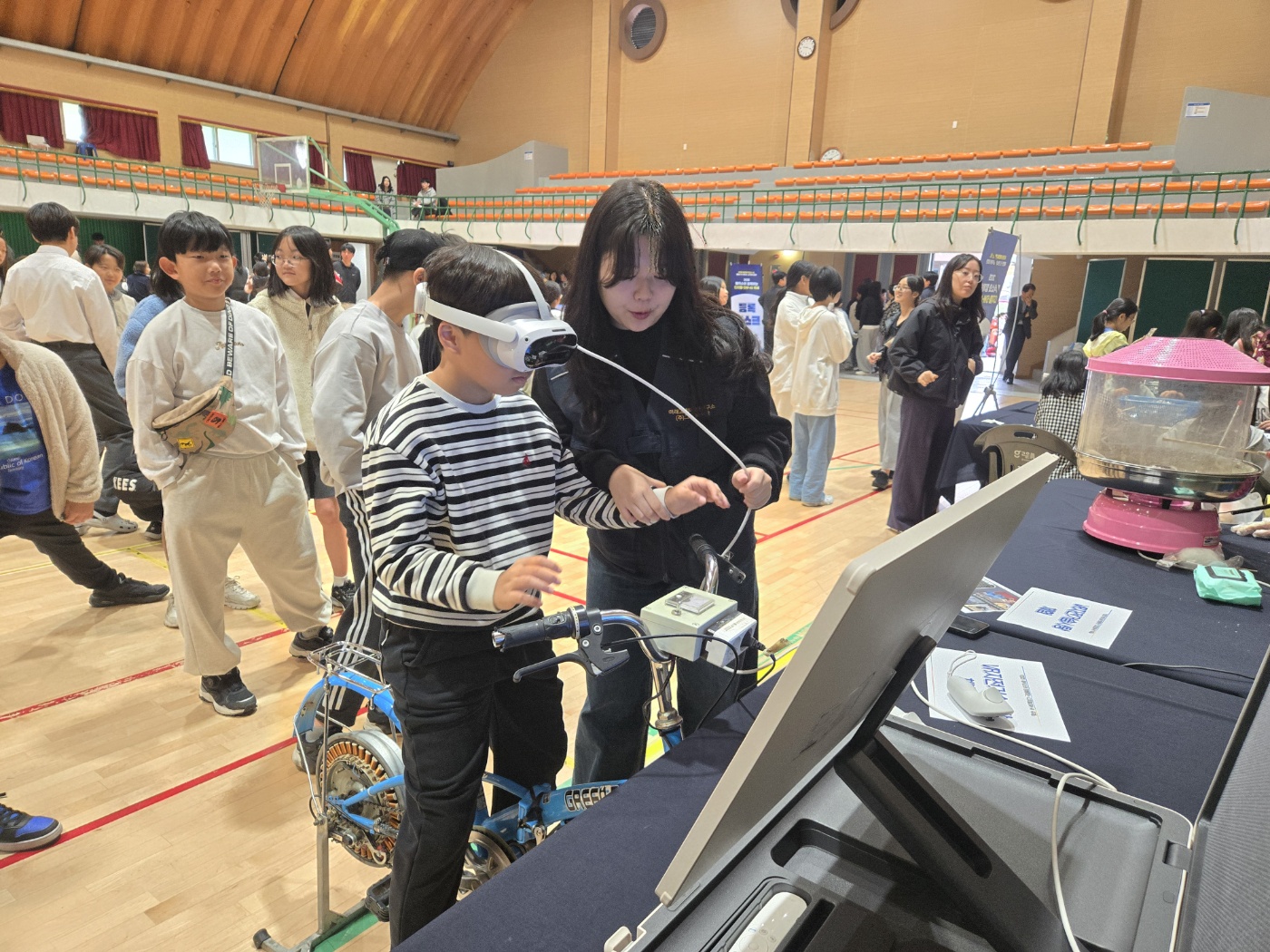 행사장에는 ‘디지털&AI 체험존’과 ‘메이커&놀이 체험존’ 등 10개의 실습형 체험 부스가 운영되었다. 학생들은 AI 오목·바둑 로봇, AR 미니레이싱, 사물인터넷 액션러닝, VR 자전거 솜사탕, 미니 로봇 축구 등 다양한 활동을 통해 인공지능과 증강현실 기술을 직접 다루며 창의력과 문제 해결력을 기르는 미래형 학습의 즐거움을 경험했다.