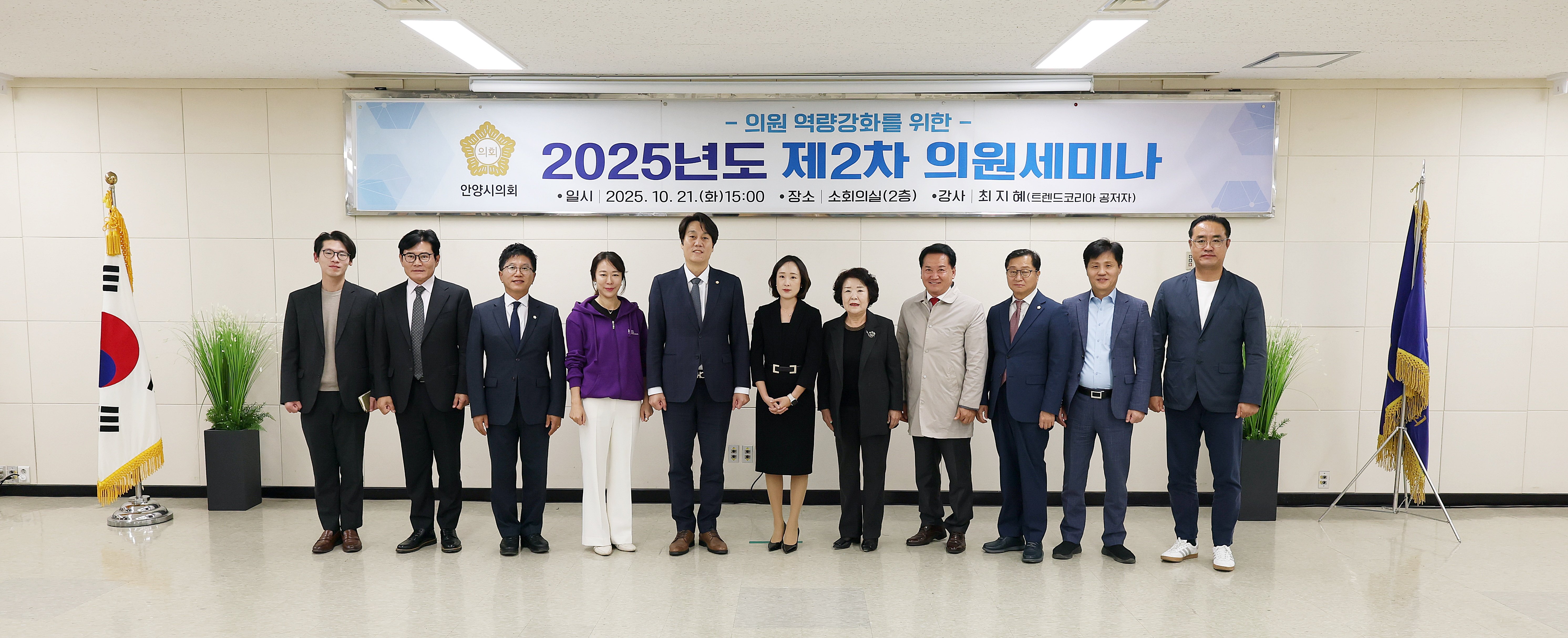 [금요저널] 안양시의회(의장 박준모)는 10월 21일(화) 시의회 2층 소회의실에서 시의원 및 사무국 직원을 대상으로 2025년도 제2차 의원세미나를 개최했다. 이번 세미나에서는 서울대학교 소비트렌드분석센터 연구위원인 최지혜 강사가 초청되어 ‘트렌드코리아 2026’ 이라는 주제로 2026년을 앞두고 주목해야 할 사회·경제·문화 전반의 주요 트렌드와 흐름을 깊이 있게 소개했다.