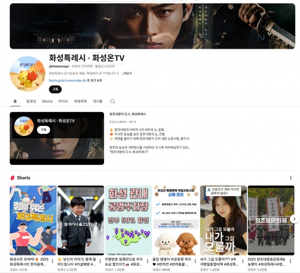 다시 말해, 화성특례시의 유튜브 성과는 단순히 많은 사람이 구독한 데 그치지 않고 콘텐츠가 시민의 공감을 얻어 자연스러운 확산으로 이어진 결과로 평가된다.