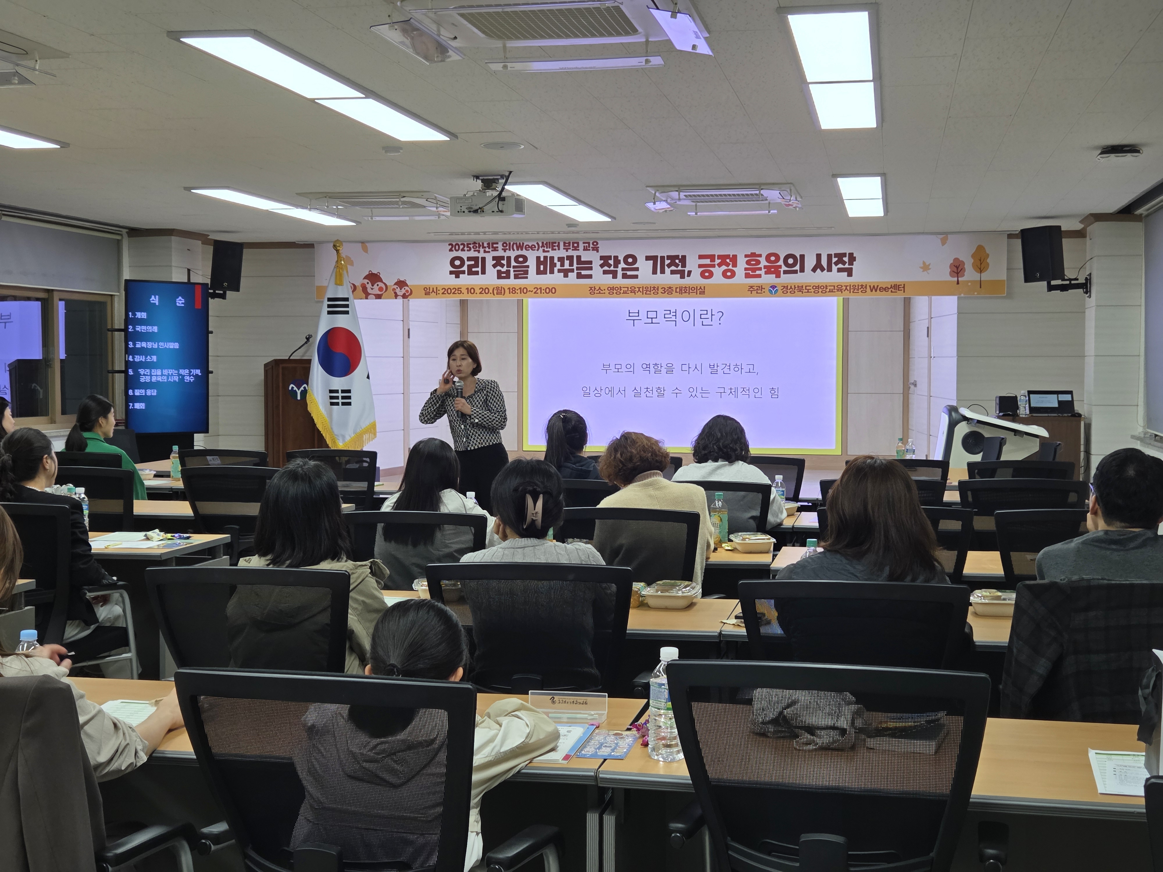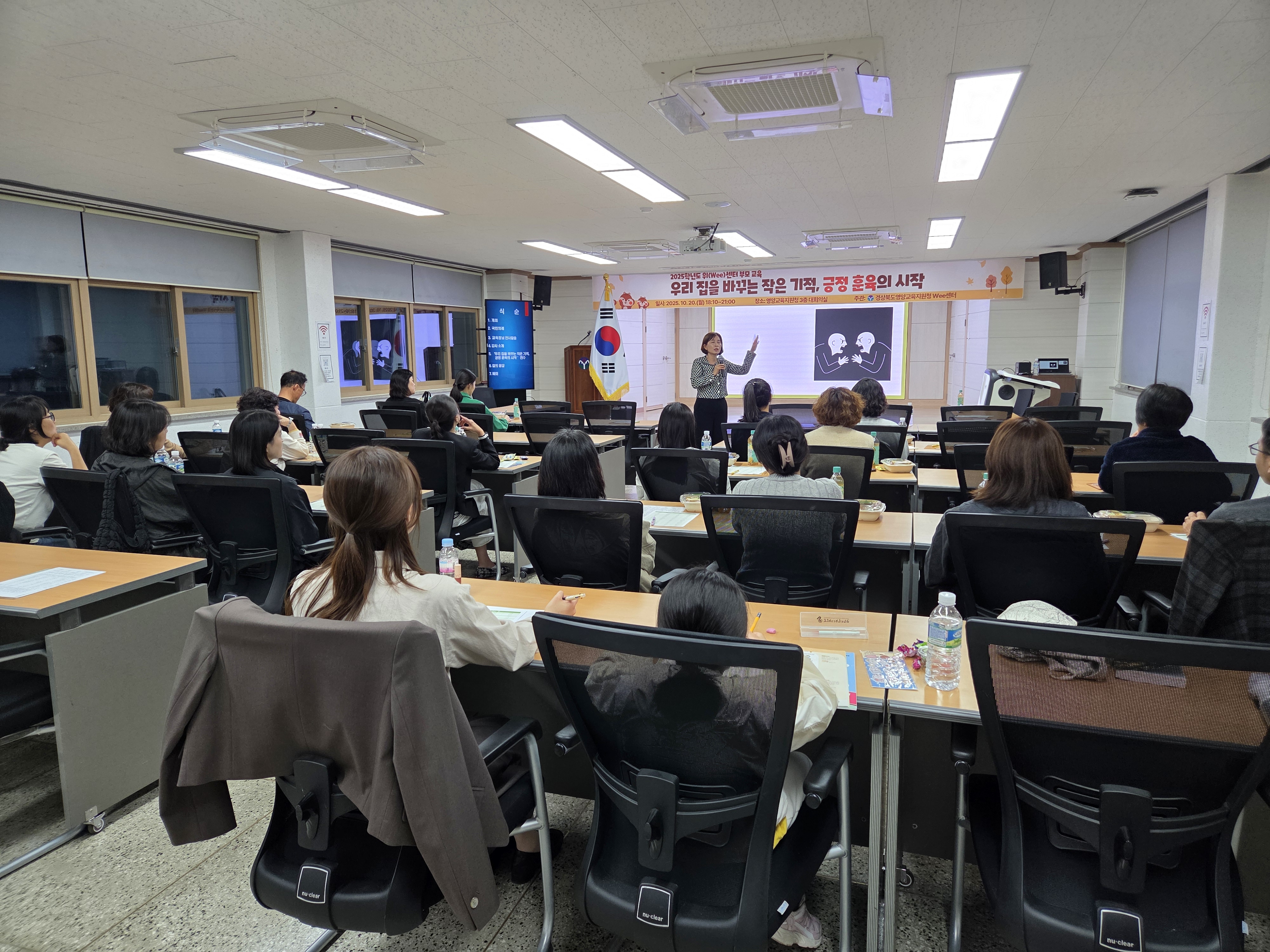 경상북도영양교육지원청(교육장 박근호) Wee센터는 10월 20일(월) 18시부터 21시까지 학부모를 대상으로 ‘우리 집을 바꾸는 작은 기적, 긍정 훈육의 시작’ 부모 교육을 성공적으로 개최하였다.