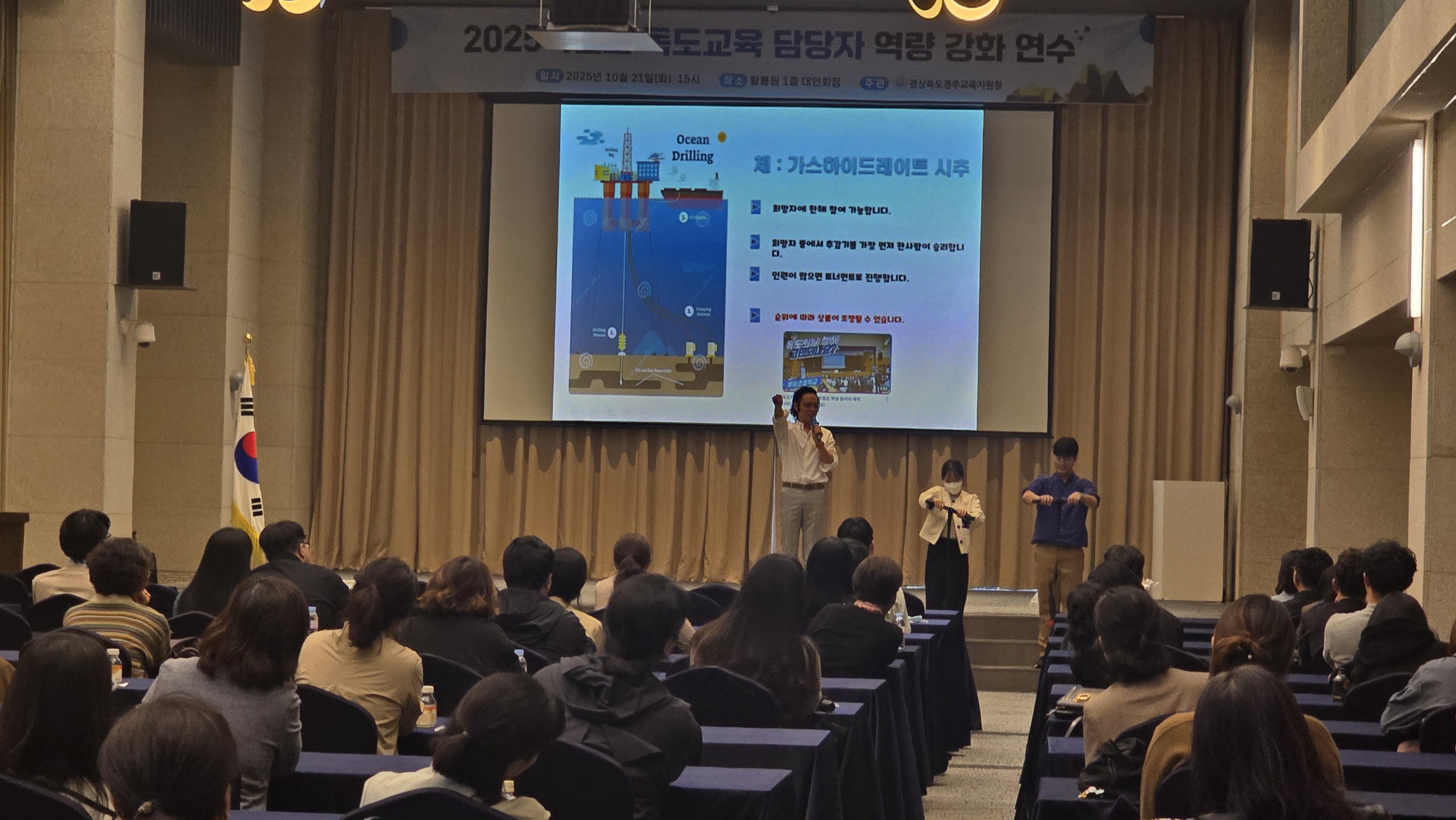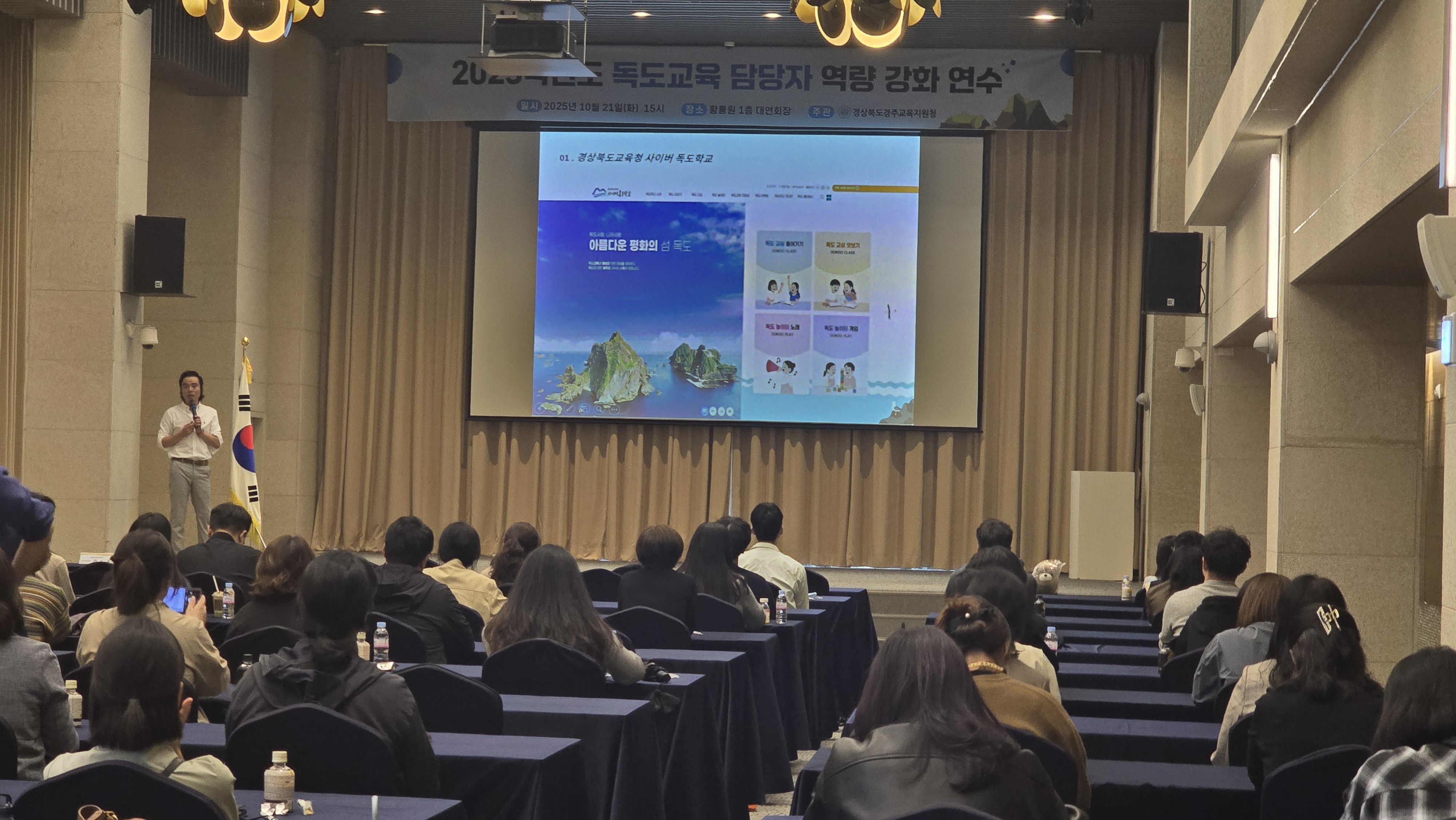 경상북도경주교육지원청(교육장 황영애)은 10월 21일(화) 황룡원 1층 대연회장에서 관내 초, 중, 고, 특수학교 독도교육 담당자 83명을 대상으로 『2025 독도 교육 담당자 역량 강화 연수』를 개최했다.
