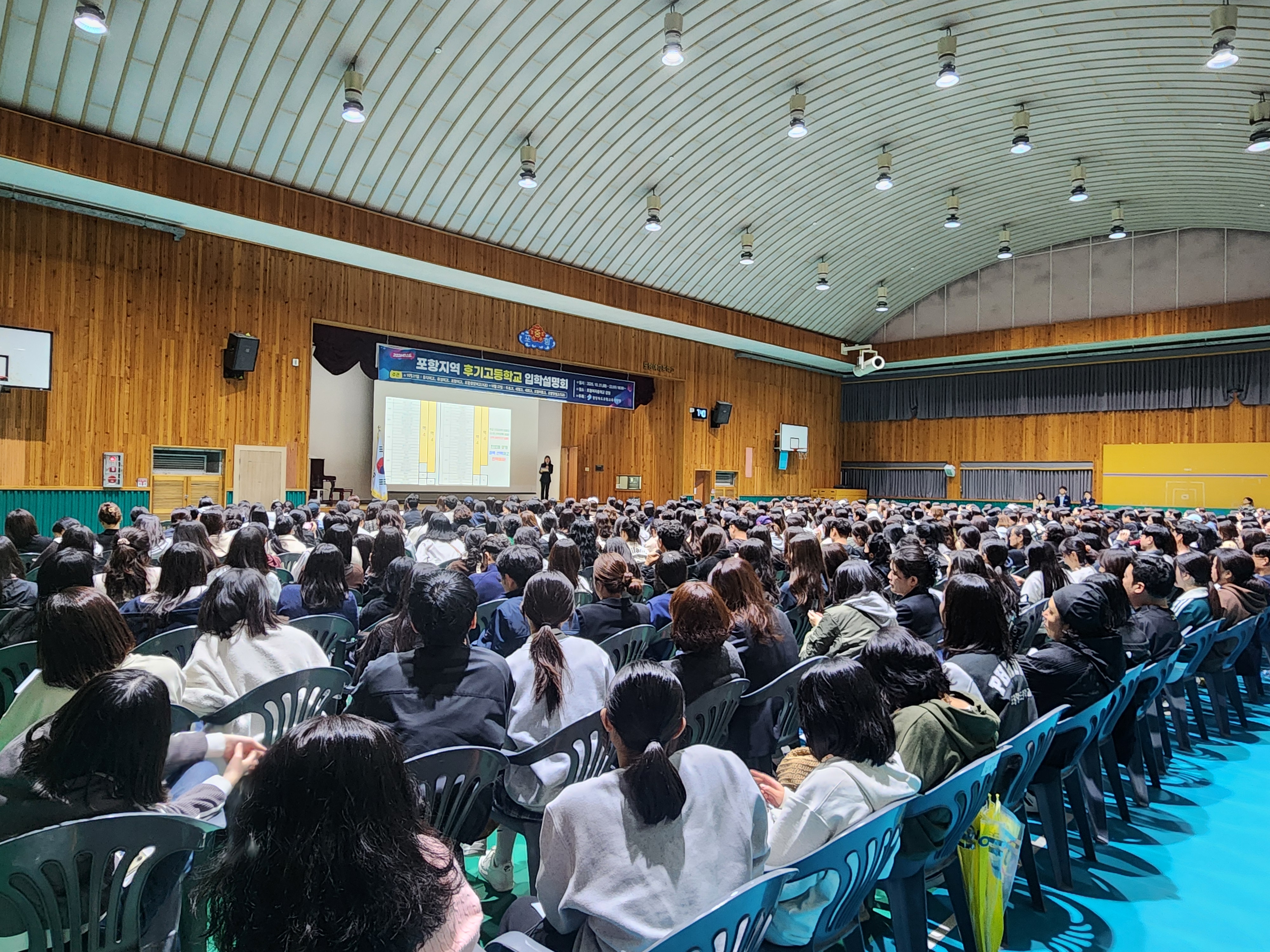 허홍범 중등교육과장님은 이날 인사말을 통해“이 설명회를 통해 고교 진학과 학생들의 적성에 맞는 진로 선택에 도움이 되기를 바라고, 학생들의 꿈을 응원하며 포항교육지원청은 그 꿈이 이루어질 수 있도록 지원을 아끼지 않겠다.”고 말했다.
