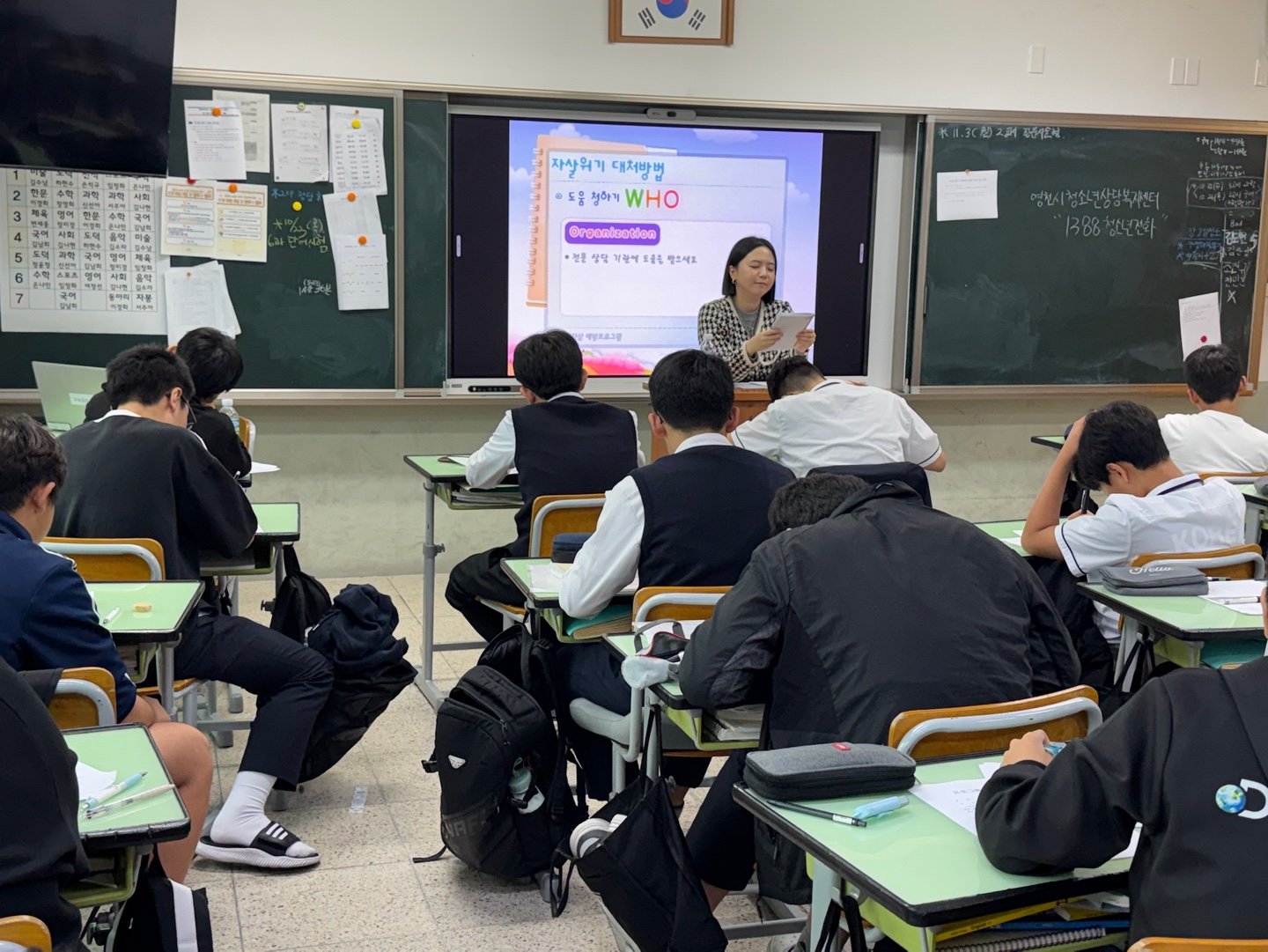 □ 이번 프로그램은 영천시청소년상담복지센터 교육 담당자들이 학교를 방문하여 반별 교육으로 진행하였으며, 자살 사고 및 행동 이후 나타날 수 있는 변화에 대한 이해와 예방 및 대처 방법을 주제로 운영되었다.
