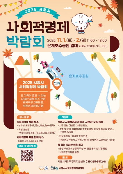 [금요저널] 시흥시는 오는 11월 1일과 2일 오전 11시부터 오후 6시까지 은계호수공원 일대에서 ‘2025년 시흥시 사회적경제 박람회’를 개최한다.