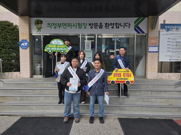 [금요저널] 의정부시는 10월 23일 도로교통공단 의정부운전면허시험장 민원실 앞에서 자동차 정기검사 이행, 의무보험 가입, 무보험 운행 근절 등 자동차 소유자의 의무 사항을 홍보하는 캠페인을 실시했다.
