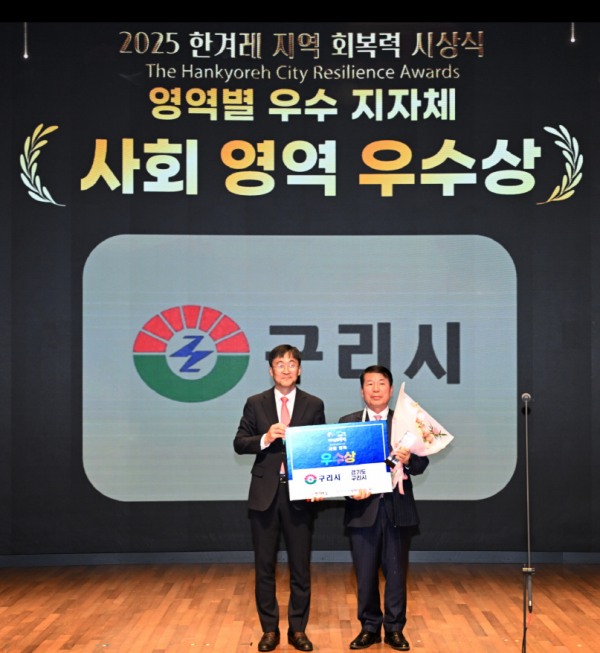 [금요저널] 구리시는 지난 23일 대한상공회의소에서 열린 ‘2025 한겨레 지역회복력 평가’ 시상식에서 사회영역 부문 1위를 차지하며 우수상을 받는 쾌거를 거뒀다.