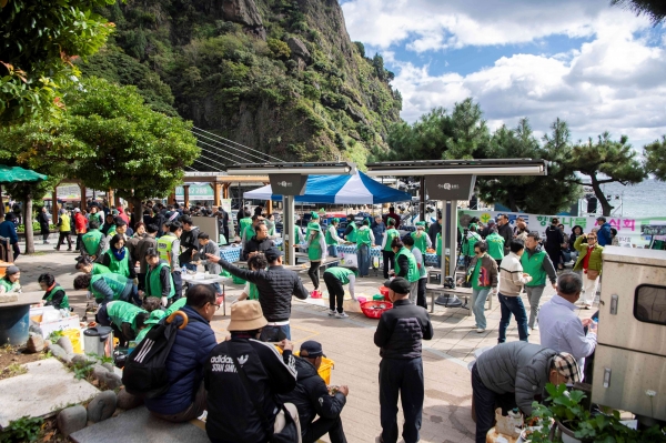 [금요저널] 울릉군새마을부녀회는 10월 24일 도동항 소공원에서 울릉도를 찾은 관광객을 대상으로 향토나물 시식회를 열고 울릉도의 우수한 향토 먹거리를 홍보했다.