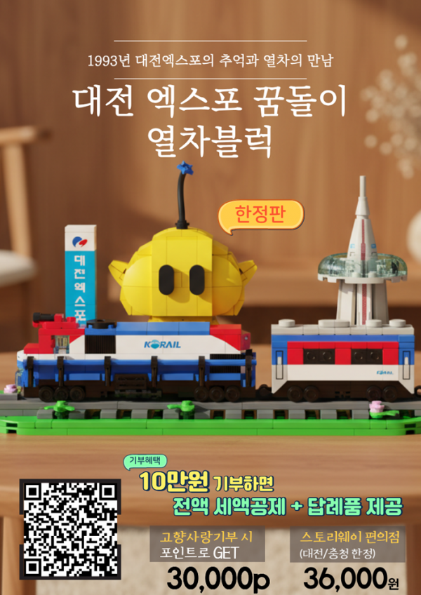 [금요저널] 1993년 대전엑스포의 상징과 철도 문화를 결합한 ‘대전엑스포 꿈돌이 열차블럭’ 이 고향사랑기부제 답례품으로 등록됐다.
