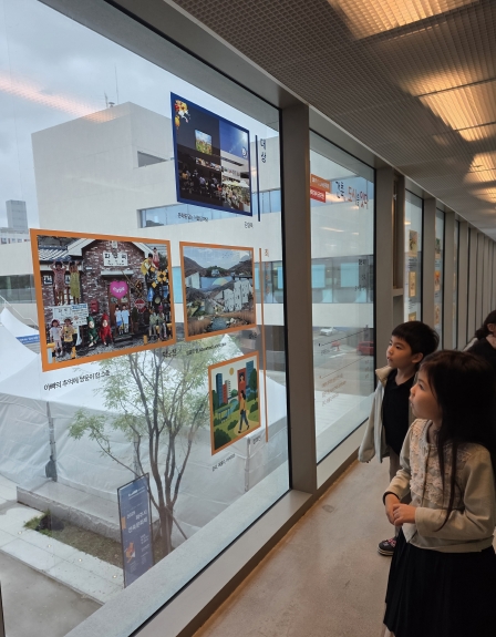 선정된 작품들은 건축문화제 전시장에 전시되어 있으며 작품 앞에서 사진을 찍는 시민들의 모습이 이어지고 있다.