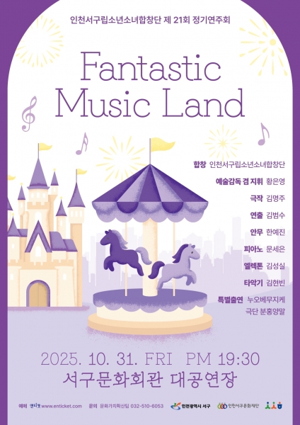 [금요저널] 인천서구립소년소녀합창단이 오는 10월 31일 오후 7시 30분, 서구문화회관 대공연장에서 제21회 정기연주회 ‘Fantastic Music Land’를 개최한다.