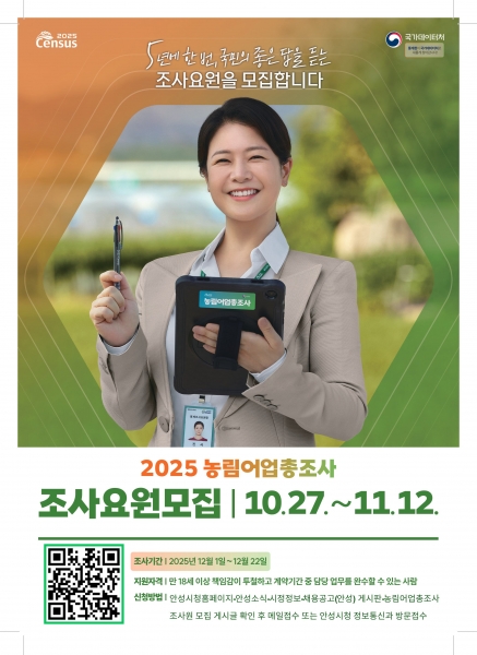 안성시, 2025 농림어업총조사 통계조사원 채용