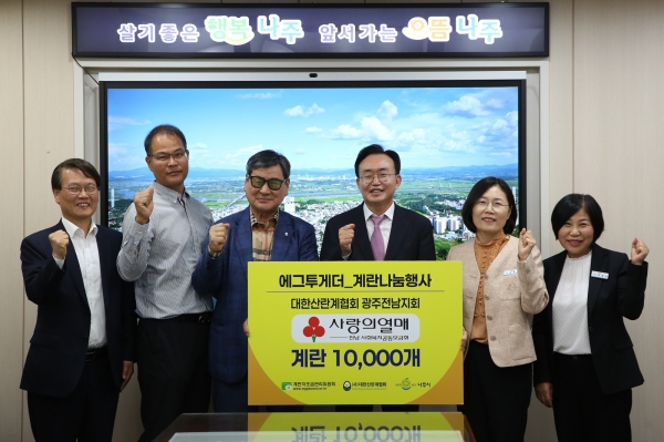 한편 나주시가 기탁받은 계란은 지역아동센터와 노인복지관 등 관내 사회복지시설에 전달될 예정이다.