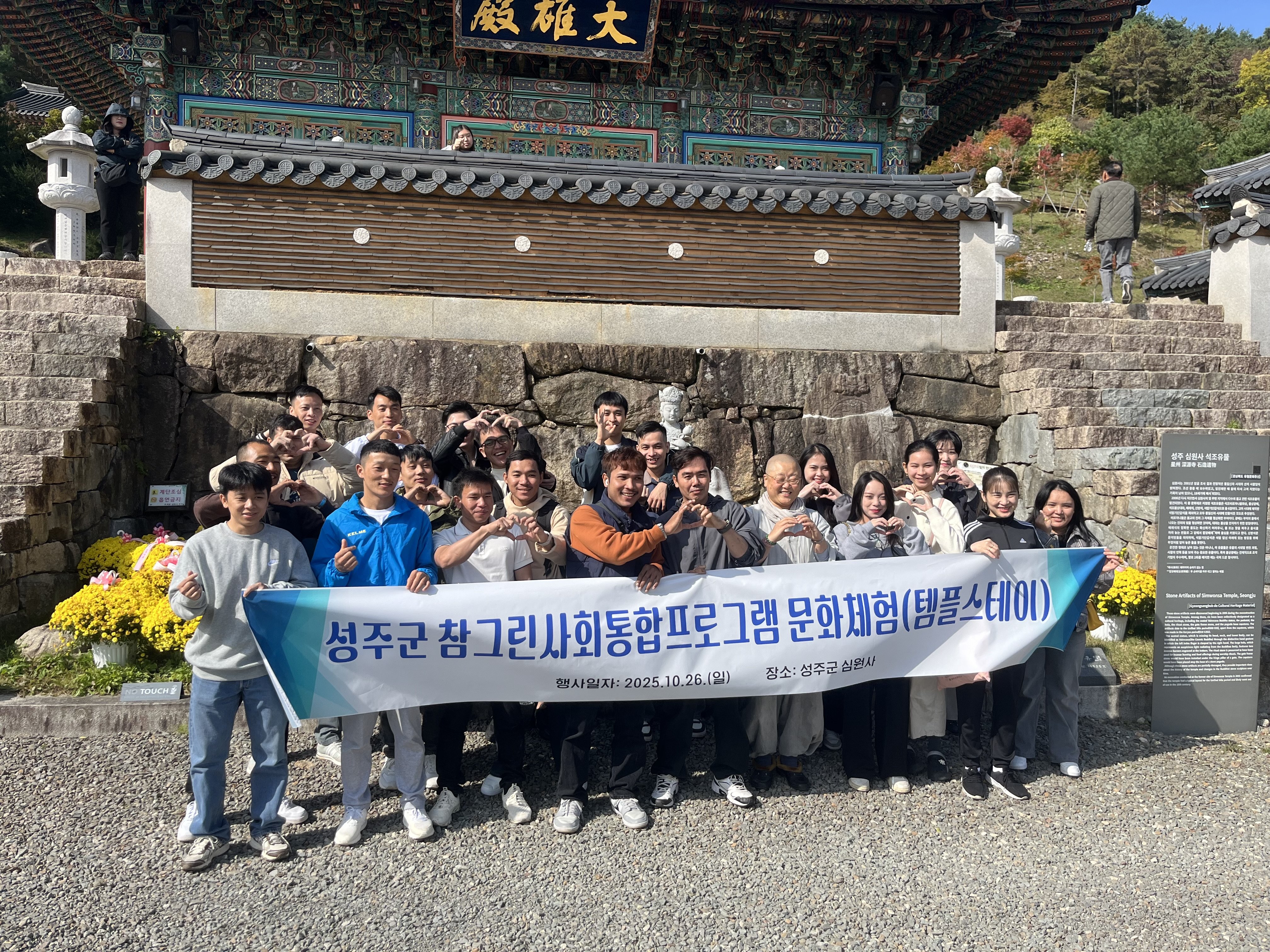 [금요저널] 성주군(군수 이병환)은 10월 26일(일) 외국인 근로자 20명을 대상으로 지역문화탐방 프로그램으로 심원사 템플스테이 체험, 가야산역사신화 테마관 견학 등을 진행했다.