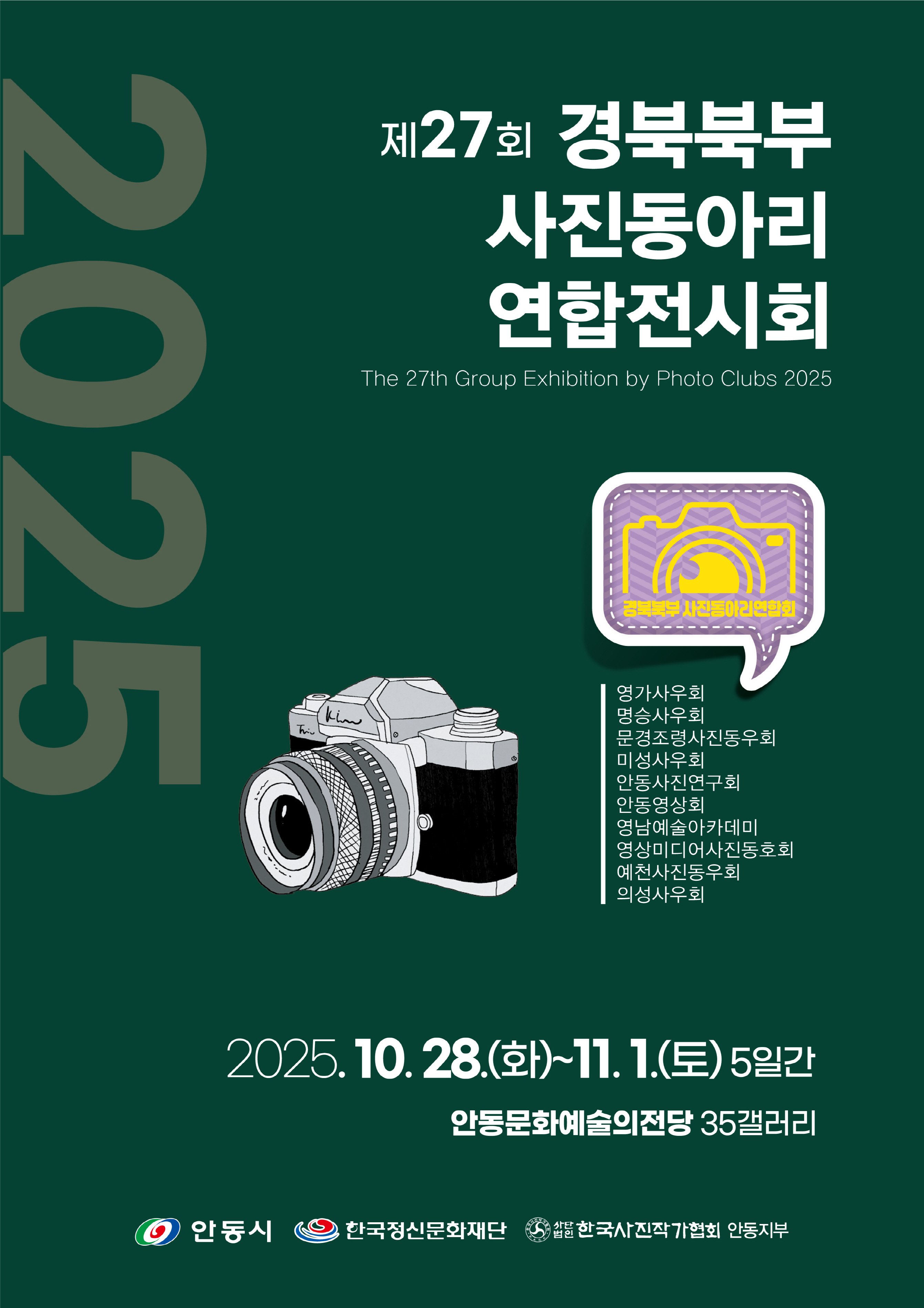 [금요저널] 경북북부사진동아리연합회(회장 박유환)는 오는 10월 28일(화)부터 11월 1일(토)까지 5일간 안동예술의전당 갤러리에서 ‘제27회 경북북부사진동아리연합전시회’를 개최한다.