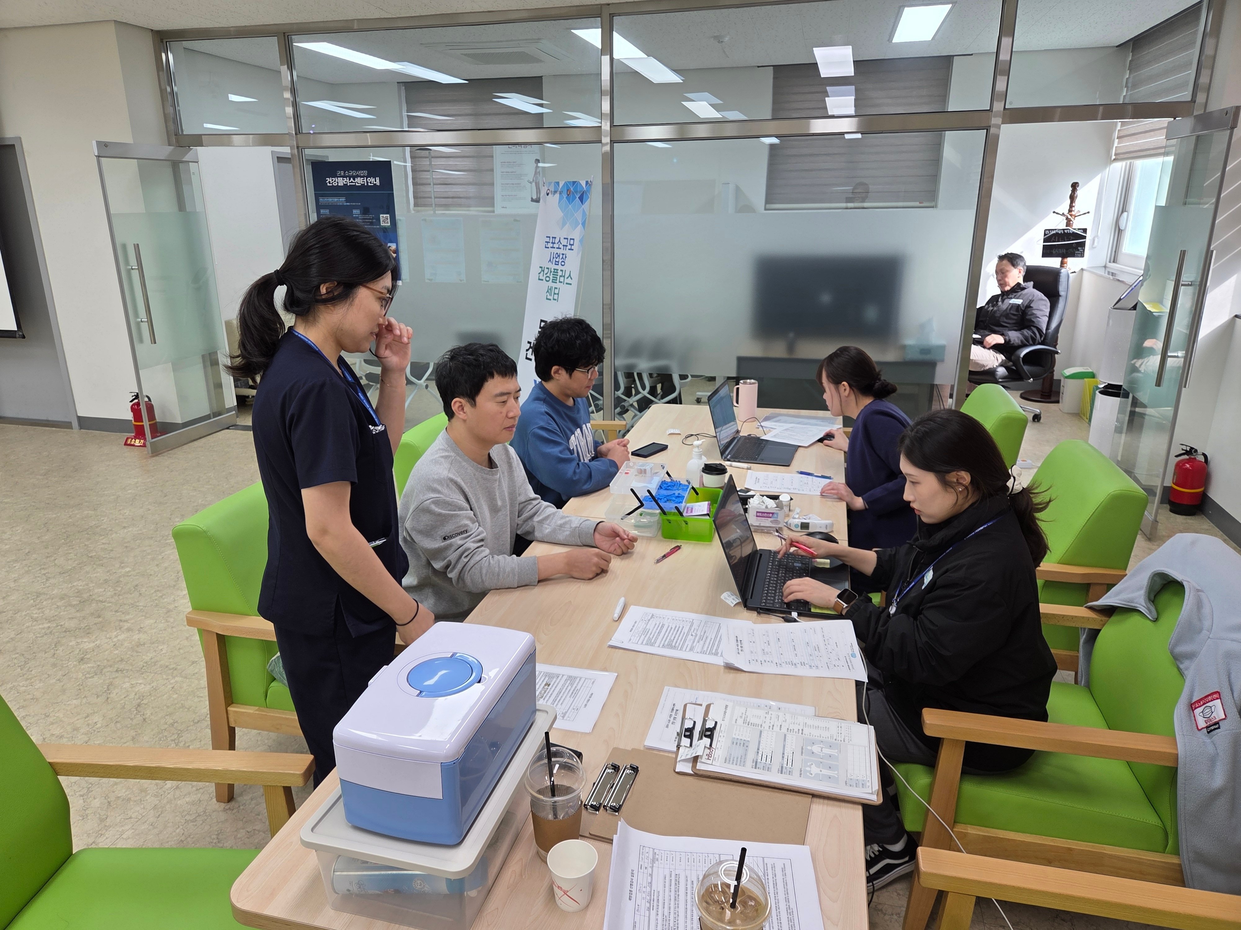 검진은 10월 23일(목) 군포소공인특화지원센터(당정동) 2층 회의실에서 경기의료원 수원병원 간 협업사업의 일환으로 진행됐다.