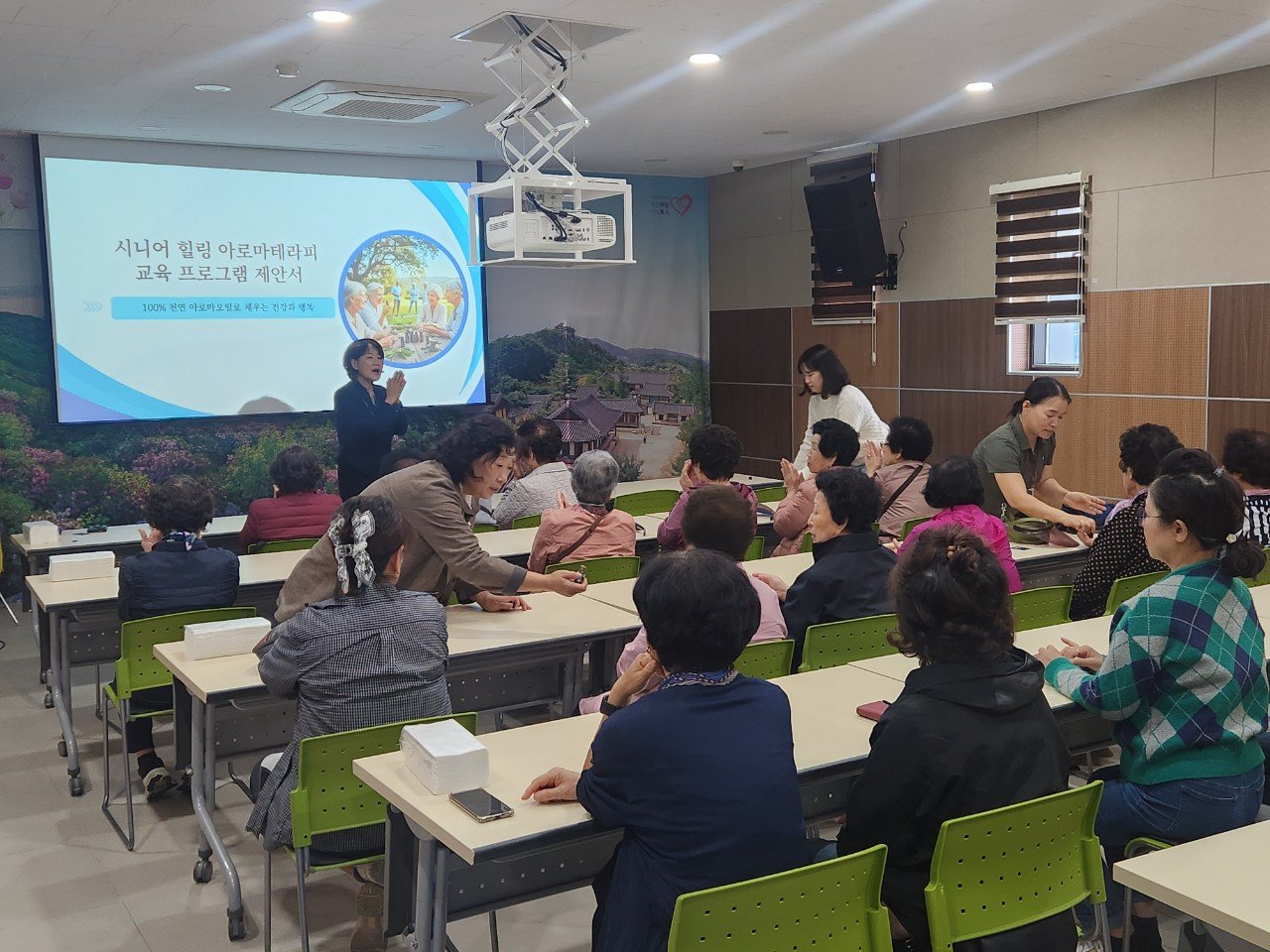 이번 프로그램은 시니어 세대를 위한 힐링 아로마테라피 교육으로 페퍼민트·라벤더 등 천연 에센셜 오일을 활용한 건강파스 만들기 체험이 진행됐다.